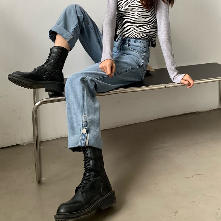 ワイド気味なストレートを、そのまま着こなすのも、ロールアップして足首をチラ見せするのも、どちらもおすすめ^^