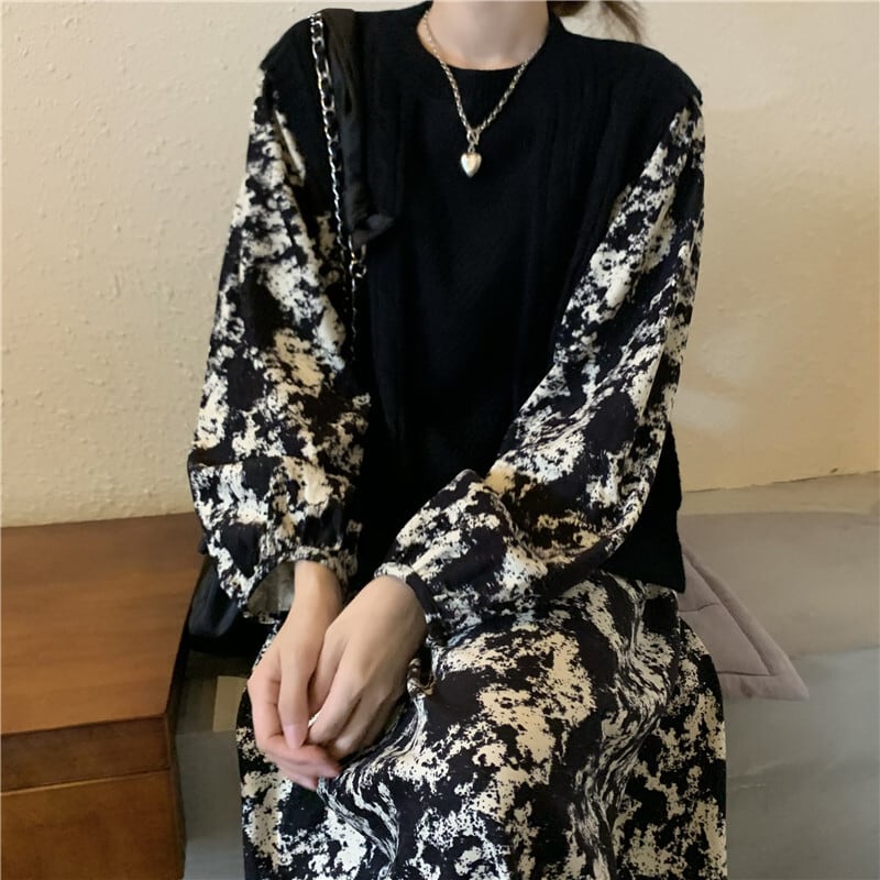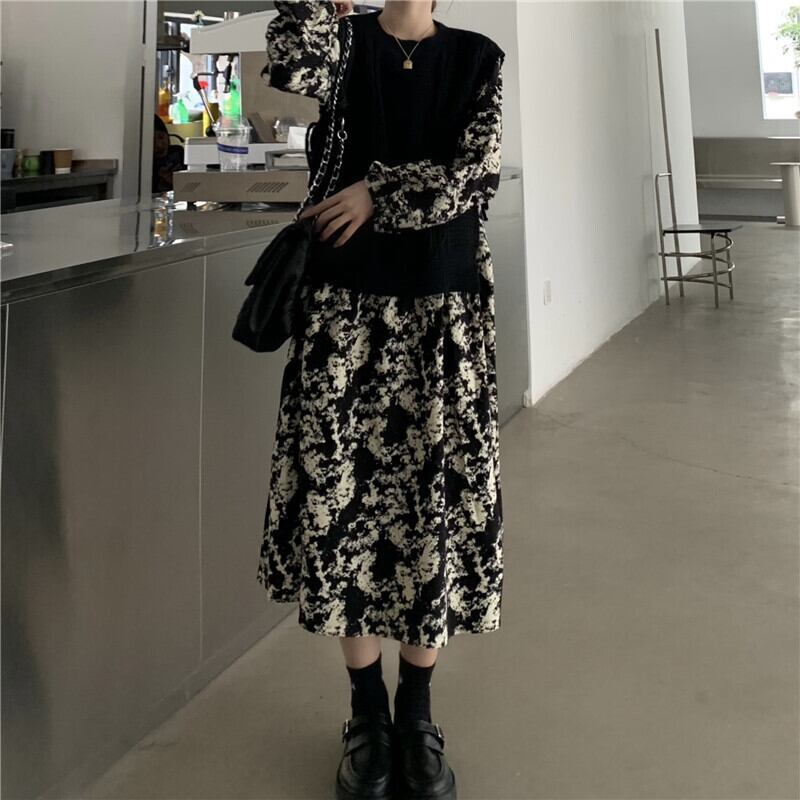 【送料無料】2色 セットアップ レディース ワンピース ベスト トップス 2点セット ツーピース ゆる お出かけ ファッション コーデ スタイル 楽ちん 上下セット カジュアル 大人 かわいい 普段使い 韓国 韓国系 ブラウン 茶 ブラック 黒 ダブルポケット 大きめ ゆったり 重ね着 休日 おでかけ 10代 20代 30代 ワンピ お得 春 秋 花柄 フラワードレス セーター ロング丈 ニット ガーリー 着ヤセ ハイウエスト 重ね着 黒 ブラック ブラウン 茶色 db1512