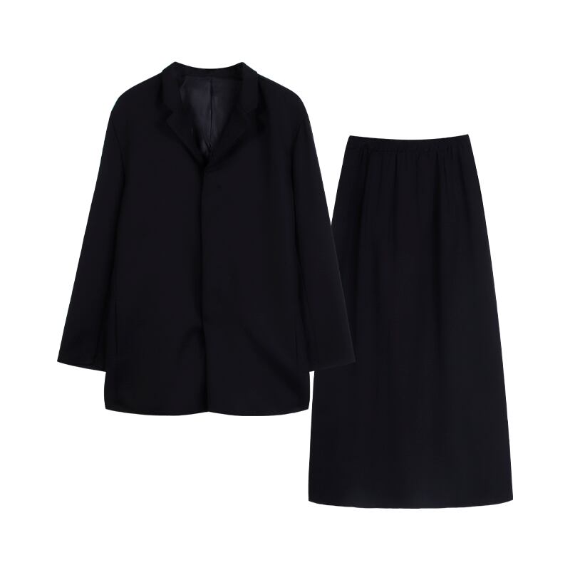 送料無料】セットアップ レディース スカート トップス 2点セット ツーピース 上下セット 黒 女性用 OL ママ シンプル ジャケット スーツ 上着 スカート2021 春服 長袖 ブレザー ルーズ ソリッドカラー ロング スーツ トップス スカート 黒 ブラック モード系 フォーマル 10代 20代 30代 オフィス ビジネス 通勤 かっこいい ファッション コーデ スタイル クール 入学式 入園式 卒業式 卒園式 モード系 クール 大人 シンプル こなれ感 ラフ オーバーサイズ お洒落 db1518