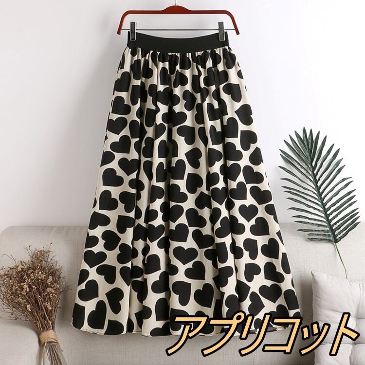 【送料無料】3色 スカート レディース ミドル丈 ミディアム丈 膝丈 フレアスカート スイングスカート おしゃれ ハート柄 大人可愛い かわいい 個性的 ラブリー ガーリー キュート きれいめ Aライン 華やか アプリコット ホワイト ブラック 白 黒 バイカラー 大人かわいい こなれ感 インスタ映え アイテム ファッション 大人カジュアル コーデ デート 通学 学生 休日 女子会 お出かけ 主役級 10代 20代 春 夏 トレンド 抜け感 ハイウエスト 伸縮性 ウエストゴム 楽ちん db1530