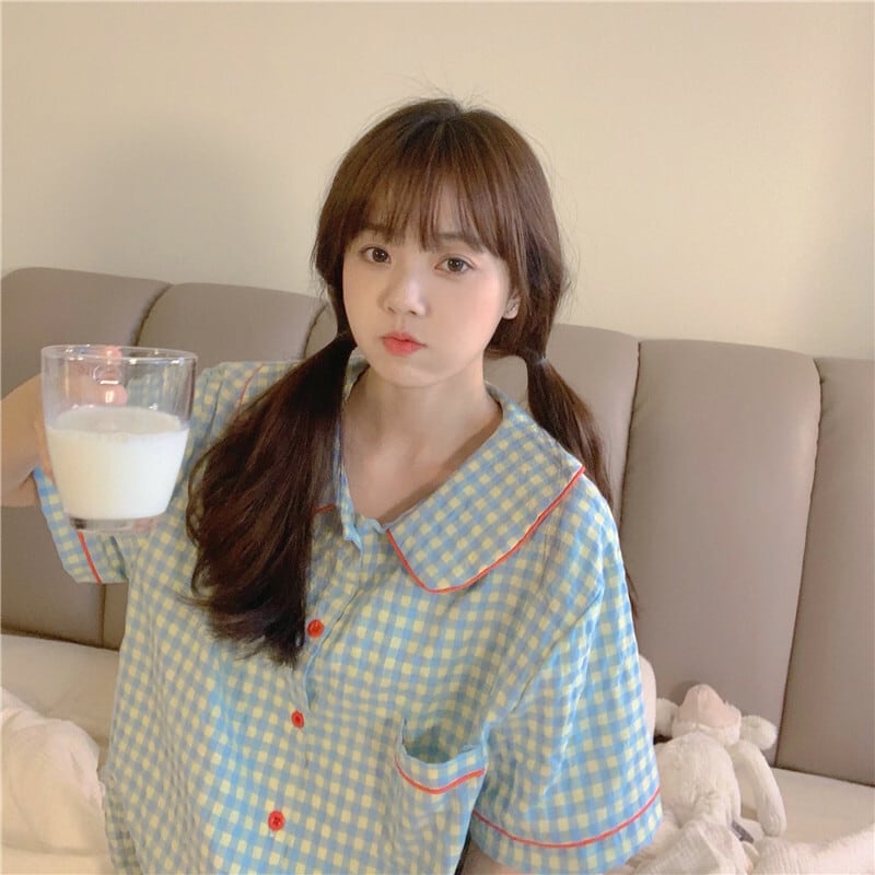 【送料無料】ルームウェア レディース 部屋着 パジャマ 寝間着 半袖 襟付き 前開き シャツ チェック柄 ショートパンツ ハーフパンツ 膝上 半ズボン 可愛い かわいい レトロ ツーピース シンプル ゆったり リラックス 素朴 薄手 水色 ライトブルー ボタン おしゃれ 大人可愛い ルーズ こなれ感 インスタ映え アイテム 韓国 ファッション 大人カジュアル カジュアル コーデ デート 学生 休日 お泊り 旅行 主役級 10代 20代 30代 夏 トレンド 抜け感 オシャレ 楽ちん 普段使い db1556