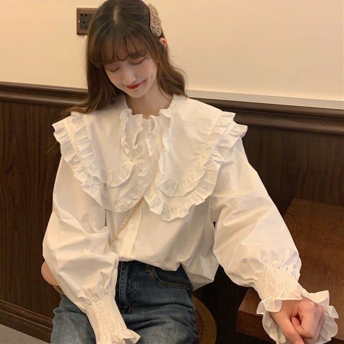 【送料無料】ブラウス シャツ トップス レディース 白 フリル パフスリーブ 襟付き ボタン ピューリタンカラー セーラーカラー ギャザー 清楚 クラシカル レトロ 貴族テイスト フランス人形 きれいめ エレガント 上品 おしゃれ 大人可愛い 長袖 個性的 カジュアル ガーリー 無地 ホワイト 赤 赤紫 ワインレッド パープル 大人かわいい こなれ感 ファッション コーデ デート 通学 学生 休日 お出かけ 主役級 10代 20代 春 秋 トレンド 抜け感 オシャレ db1576