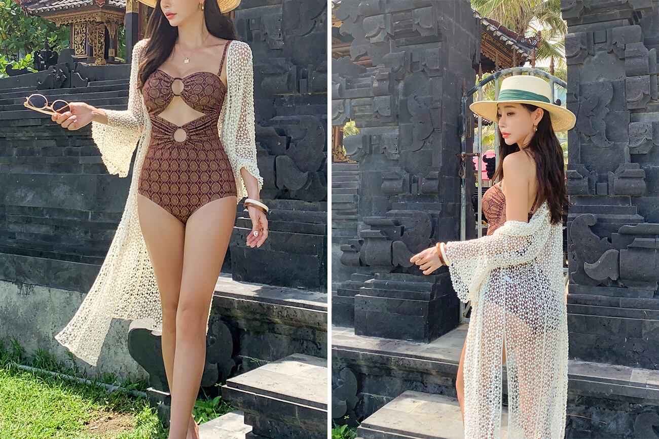 【送料無料】 水着 ワンピース レディース セクシー かわいい 体型カバー 大きいサイズ 可愛い モノキニ ビキニ水着 女の子 アジアン エスニック 柄 茶色 ブラウン 大人可愛い 大人っぽい 韓国 水着 ミステリアス おしゃれ 個性的 コンサバ エキゾチック レトロ 大人っぽい 水着 主役級 スイムウェア スタイルアップ カバー力 トレンド 新作 安い 夏 海 プール チラ見せ db1417
