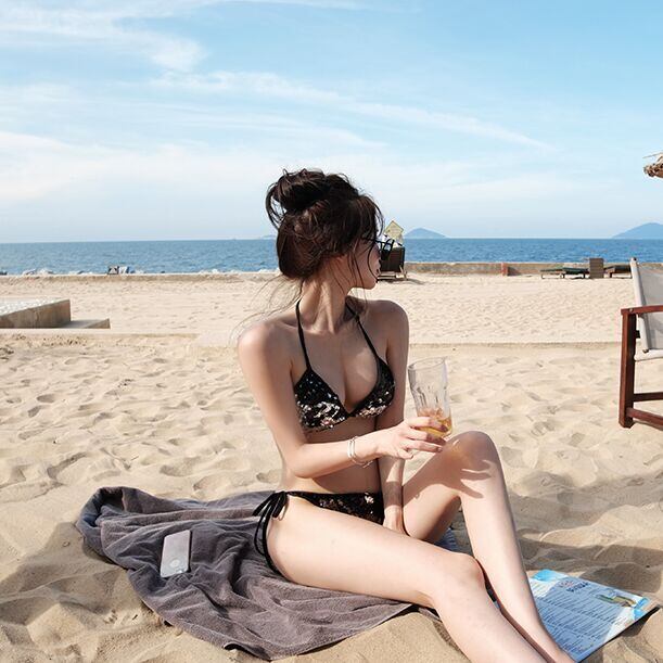 【送料無料】 2色 水着 ビキニ レディース 三角ビキニ かわいい スパンコール キラキラ トライアングル ビキニ 紐 ホルターネック サイドリボン ハイレグ 大人可愛い おしゃれ きれい ブラック 黒 ピンク 無地 女っぽい 韓国 セクシー 個性的 リゾート ビーチ 新作 大きいサイズ スウィート インスタ映え 目立つ 色気 肌見せ 日焼け 水着 主役級 スイムウェア スタイルアップ カバー力 トレンド 新作 夏 海 プール リゾート 安い db1432