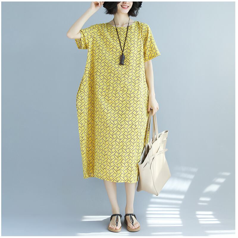 【送料無料】 ワンピース レディース ミモレ丈 コクーンスカート 格子柄 ラウンドネック 半袖 ワンピ 袖あり 夏ワンピース 大きめ ゆったり おしゃれ 大人可愛い オーバーサイズ リラックス 個性的 レトロ ボートネック フェミニン きれいめ プラスサイズ 大きいサイズ XL 襟なし イエロー 黄 ネイビー 紺 大人かわいい こなれ感 インスタ映え ママ ファッション 大人カジュアル 休日 公園デビュー お出かけ 20代 30代 40代 春 夏 トレンド 抜け感 楽ちん 体型カバー db1462