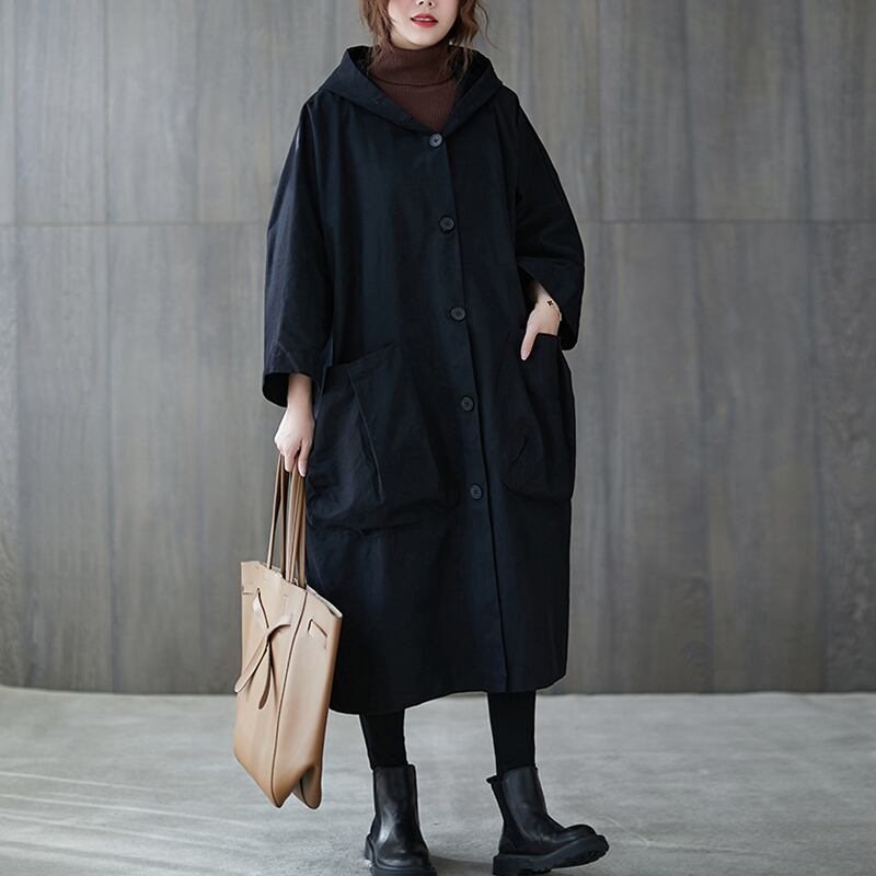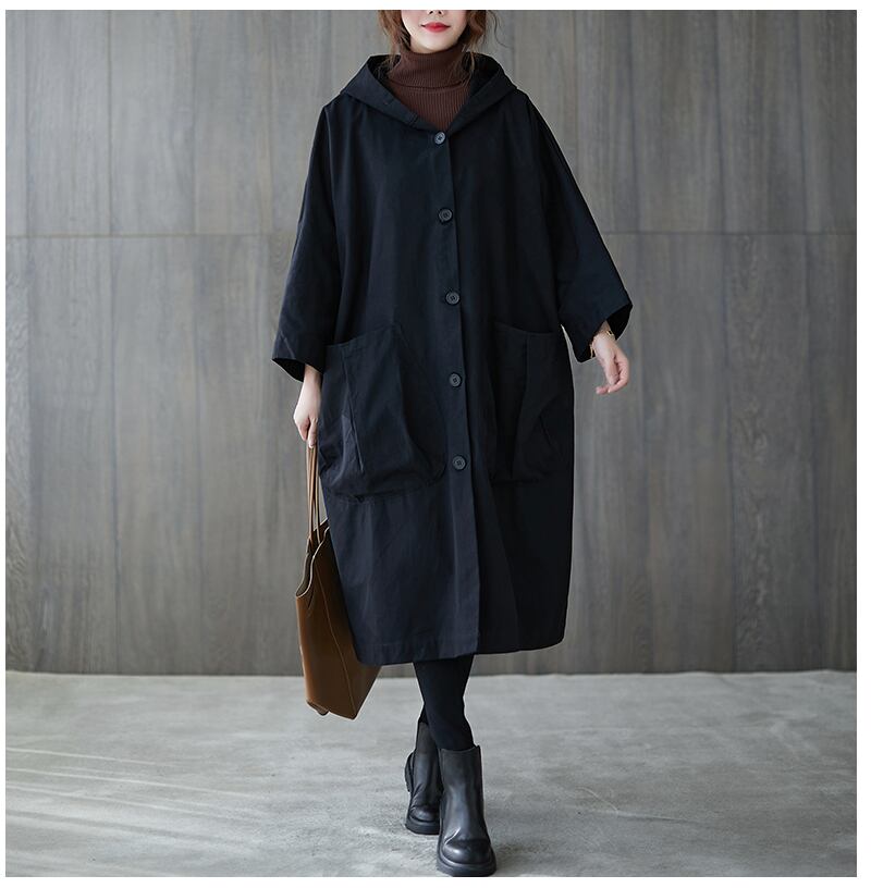 【送料無料】アウター レディース コート ロング フード付 ウインドブレーカー 長袖 上着 羽織 薄手 大きめ おしゃれ 大人可愛い カジュアル 黒 無地 カーキ ゆったり オーバーサイズ ラウンドポケット ボタン ボーイッシュ ルーズ クール かっこいい メンズライク マニッシュ 大人かわいい こなれ感 コーデ デート お出かけ 通勤 オフィス 20代 30代 40代 春 秋 トレンド 抜け感 オシャレ ラージサイズ ブラック 普段使い 重ね着 着回し ロングコート ジャンパー ロング丈 db1463