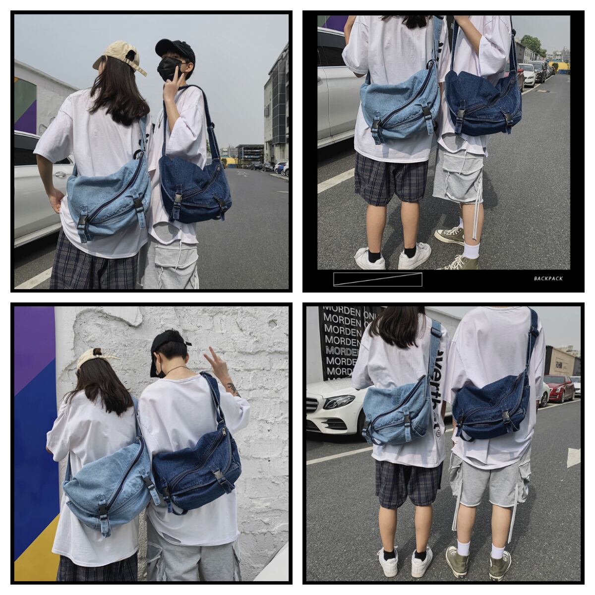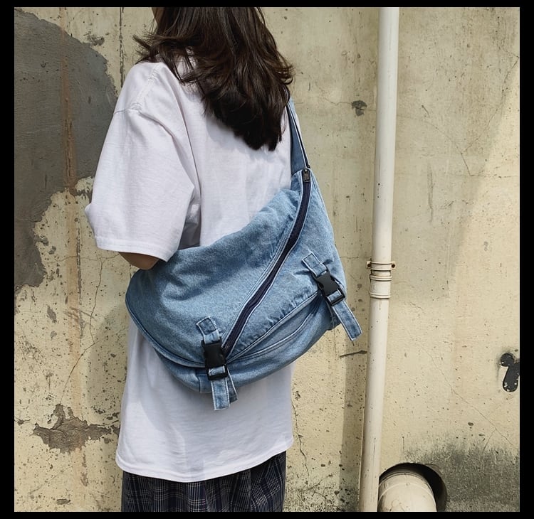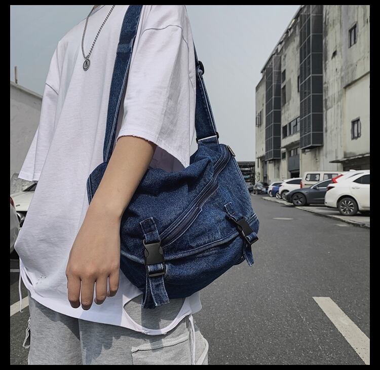 ユニセックスで使用できるデニム地のメッセンジャーバッグ