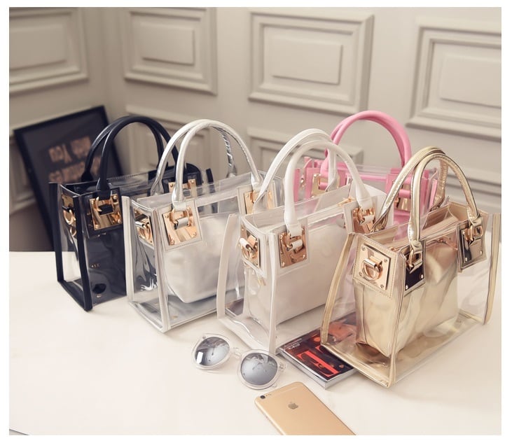 【送料無料】バッグ レディース ハンドバッグ ショルダーバッグ ビニール バック 鞄 かばん 透明 バックインバック ポシェット 2way スクエア型 手提げ 斜めがけ バッグ エレガント かわいい 大人可愛い ホワイト 白 ブラック ベージュ ゴールド 黒 ピンク クリアバッグ PVC 春 夏 小バッグ ミニバック 旅行 アクセント 韓国 ファッション カジュアル コーデ 通学 デート 学生 休日 お出かけ デート 普段使い こなれ感 ポーチ付き 四角 ファスナー お洒落 小物 bag db1494