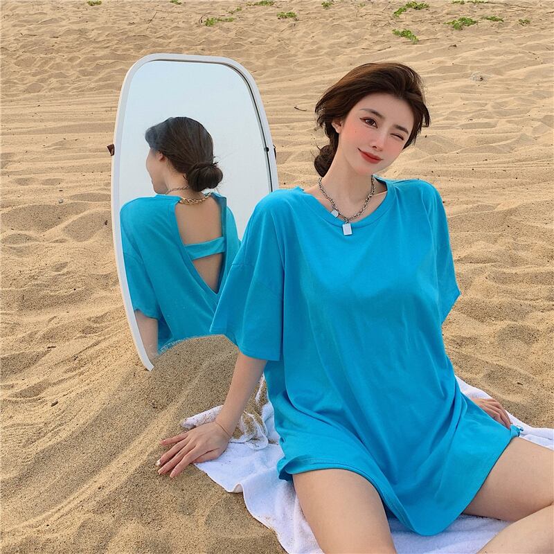 【送料無料】3色 トップス レディース 半袖 Tシャツ 背中見せ バックシャン 大胆 セクシー オーバーサイズ ロング ミニワンピ かわいい カジュアル スリット チェーン 体系カバー 春 夏 袖あり シャツ ブラウス 個性的 きれいめ トップス 夏 コーデ 海 プール ビーチ イベント リゾート ファッション 白 黄色 青 無地 ビビットカラー こなれ感 インスタ映え アイテム 韓国 ファッション 大人カジュアル 休日 お出かけ 主役級 10代 20代 トレンド 抜け感 オシャレ 存在感 db1442