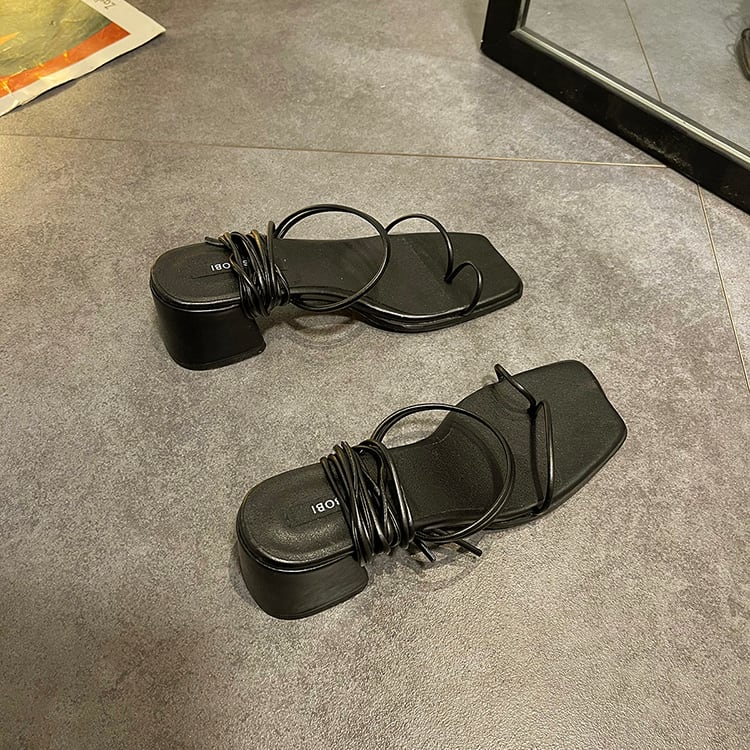 【送料無料】サンダル レディース シューズ ヒール サンダル レースアップ 紐 チャンキーヒール 太ヒール ミドルヒール フレアヒール スクエアトゥ 個性的 カジュアル ルーズ 大人っぽい 大人可愛い きれいめ かっこいい クール 6cmヒール PU インスタ映え アイテム 韓国 ファッション 大人カジュアル 学生 コーデ デート 休日 デート お買い物 お出かけ リゾート 白 ホワイト 黒 ブラック シンプル 主役級 10代 20代 30代 夏 トレンド おしゃれ オシャレ 普段使い db1591