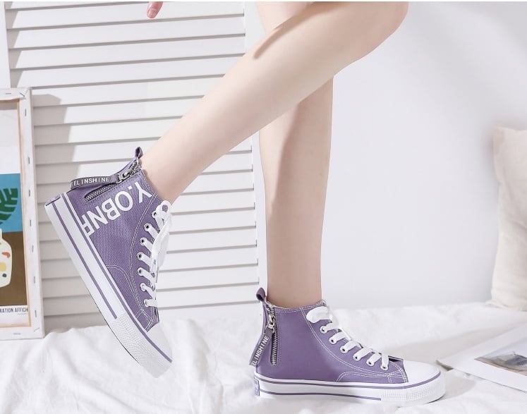 【送料無料】スニーカー レディース ハイカット ロゴ おしゃれ ニュアンスカラー 大人可愛い 靴 くつ クツ シューズ キャンバススニーカー 紐靴 ジッパー フラット 履きやすい 歩きやすい カジュアル かっこいい ラフ かわいい ボーイッシュ ガーリー パープル 薄紫 藤色 黒 ブラック グリーン カーキ くすみカラー インスタ映え アイテム 韓国 コーデ 通学 学生 休日 お出かけ 普段使い 大きいサイズ 25.0cm 10代 20代 30代 春 秋 抜け感 オシャレ おしゃれ db1598