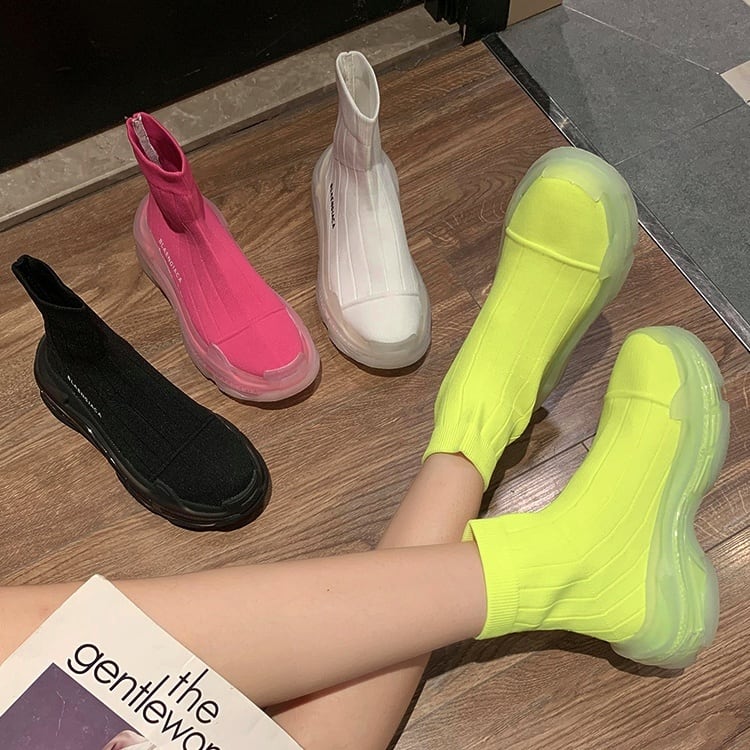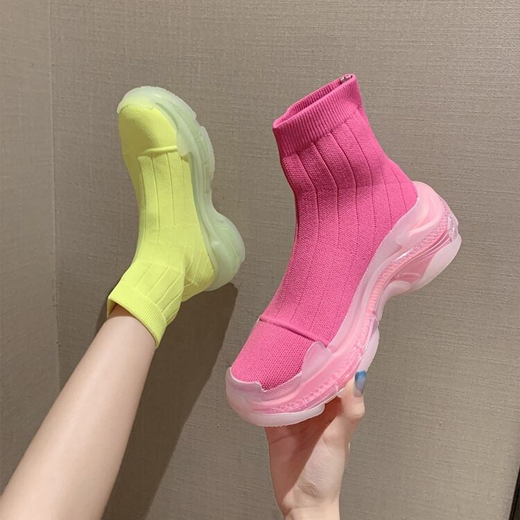 【送料無料】ブーツ シューズ レディース スニーカー ソックススニーカー ハイカット 厚底 蛍光 ビビットカラー 個性的 靴 くつ クツ 紐なし 履きやすい カジュアル スポーティー シンプル かわいい 脚長 存在感 こなれ感 インスタ映え アイテム 韓国 ファッション コーデ デート 通学 学生 休日 公園デビュー お出かけ アウトドア ウォーキング ジム 運動 黒 ブラック 白 ホワイト ピンク 黄色 蛍光イエロー 10代 20代 30代 春 夏 トレンド 抜け感 オシャレ おしゃれ db1604