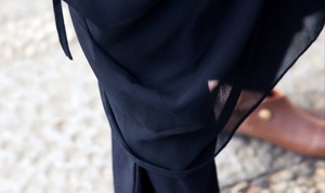 ひらひらとなびく透け感のある生地が華やかなアクセント