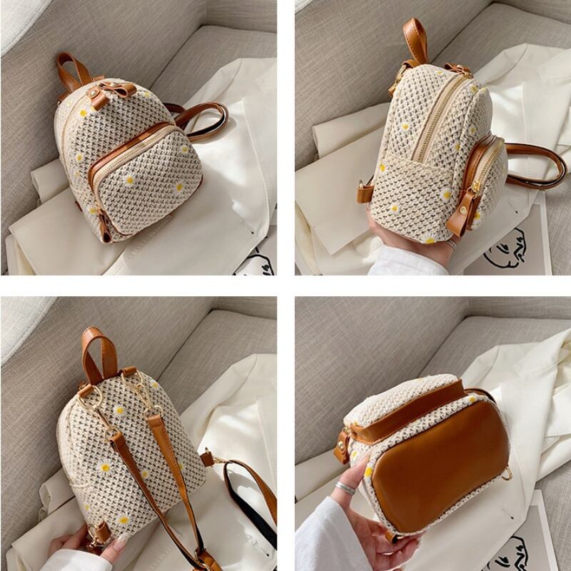 【送料無料】2色 リュック レディース かわいい バッグ かご 花柄 ラブリー おしゃれ 鞄 かばん カバン リュックサック ミニリュック かごバッグ ショルダー 軽量 肩掛け 小バッグ bag ファスナー ジッパー わら織 ガーリー レトロ 可愛い カジュアル キュートフェミニン 上品 花柄 刺? 小さめ 小さい カーキ ホワイト 白 ベージュ インスタ映え ファッション コーデ デート 学生 お出かけ お買い物 旅行 主役級 10代 20代 春 夏トレンド 抜け感 オシャレ おしゃれ db1616