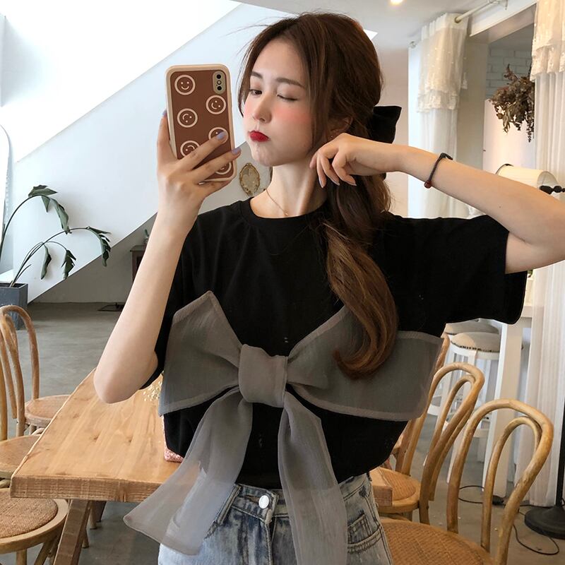 【送料無料】 トップス レディース Tシャツ 半袖 襟なし ビッグリボン かわいい おしゃれ 存在感 黒 白 カットソー ラウンドネック 薄手 リボン シフォン レース 無地 シンプル ラフ カジュアル キュート ラブリー 華やか シック 大人可愛い 個性的 存在感 こなれ感 インスタ映え アイテム 韓国 ファッション 白 ホワイト 黒 ブラック コーデ デート 通学 学生 女子会 お買い物 イベント お出かけ 主役級 10代 20代 春 夏 トレンド S M 抜け感 オシャレ 甘め db1621