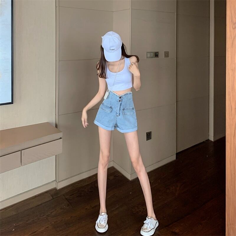 美脚が叶う、ガーリーで爽やかなデニムショートパンツ♪