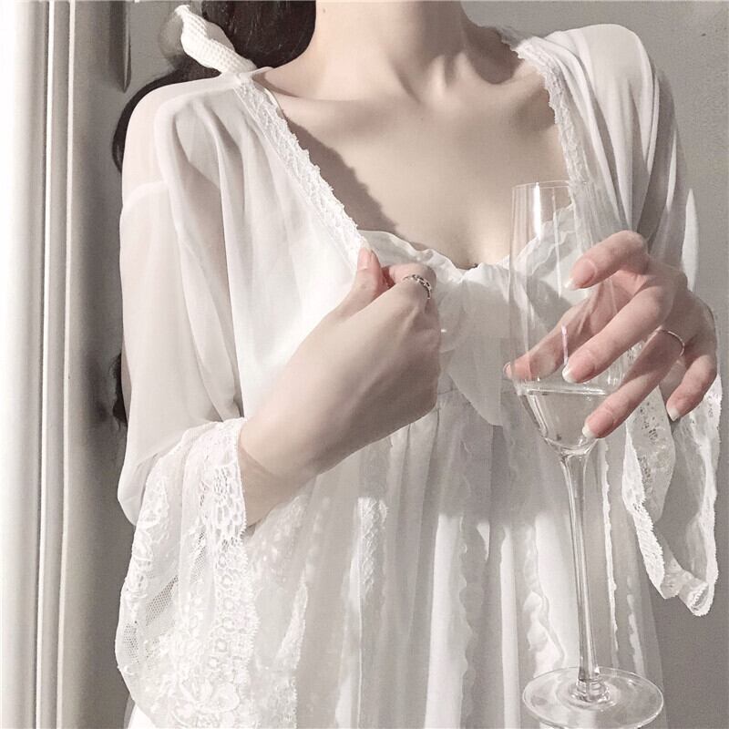 【送料無料】ルームウェア レディース 2点セット キャミソール ワンピース 白 ガーリー 透け感 セクシー パジャマ ネグリジェ 部屋着 寝巻き キャミワンピ 羽織 カーディガン シフォン レース 透け感 シースルー ギャザー ティアード リボン フリル ふんわり おしゃれ 大人可愛い 長袖 ガーリー ラグジュアリー モテ キュート セクシー 清楚 華やか 白 ホワイト 大人かわいい こなれ感 韓国 コーデ デート お泊り 主役級 10代 20代 春 夏 秋オシャレ 柔らかい db1652