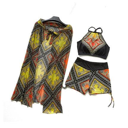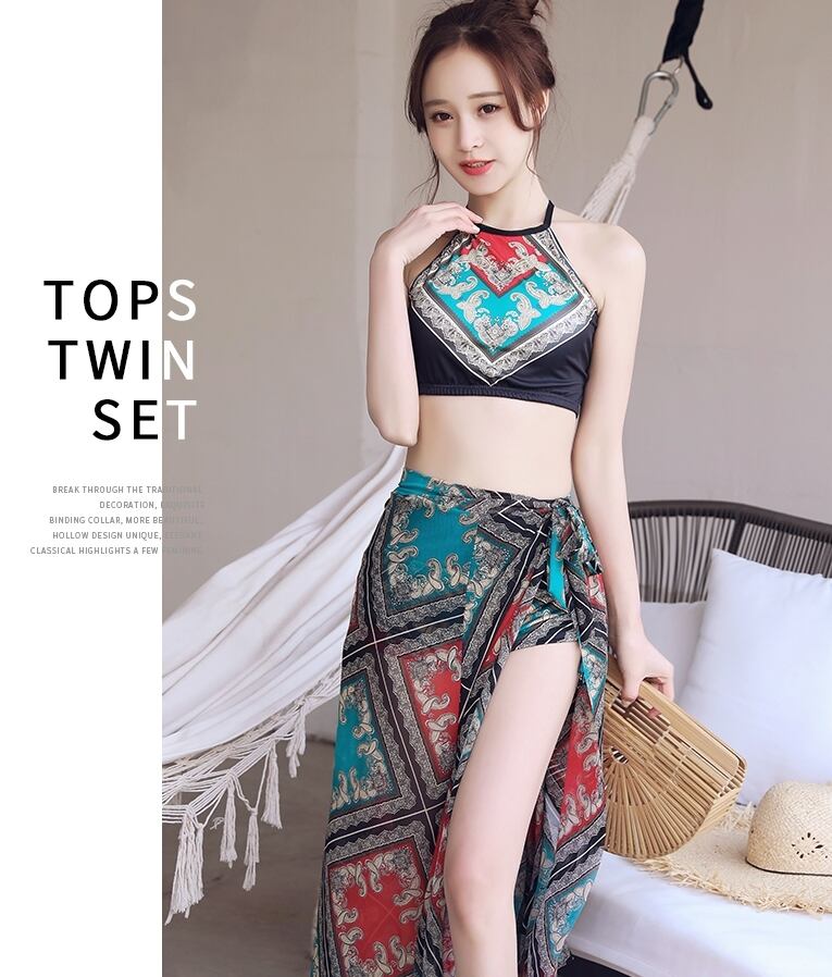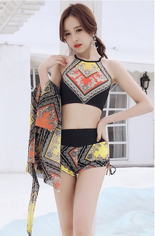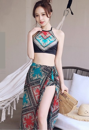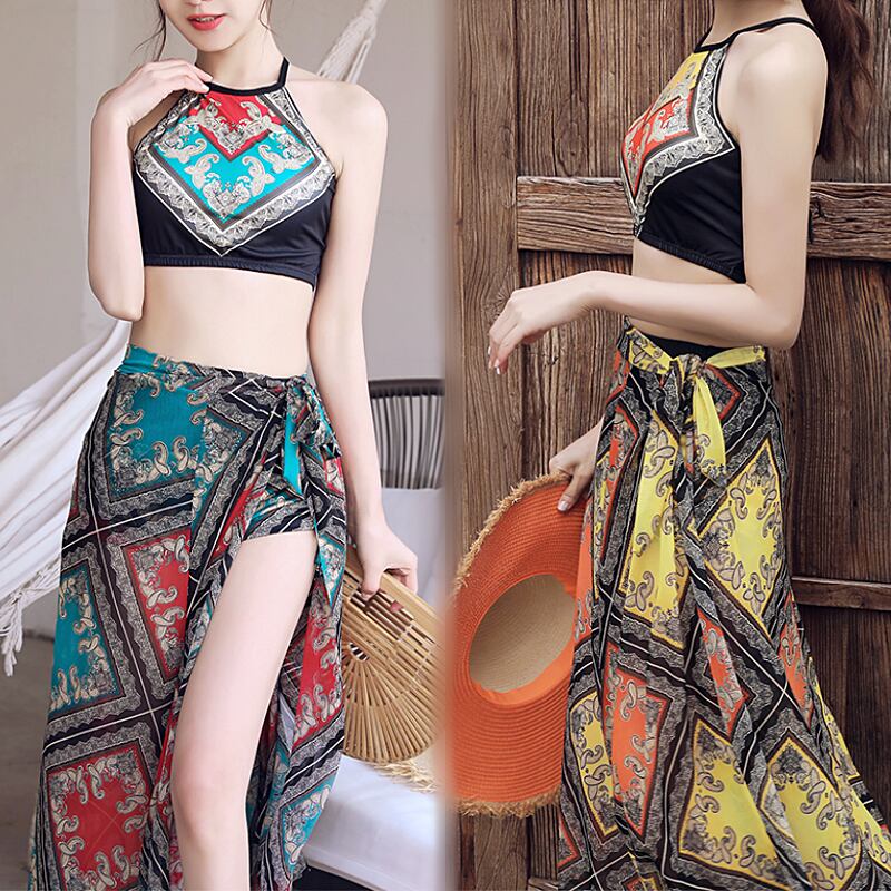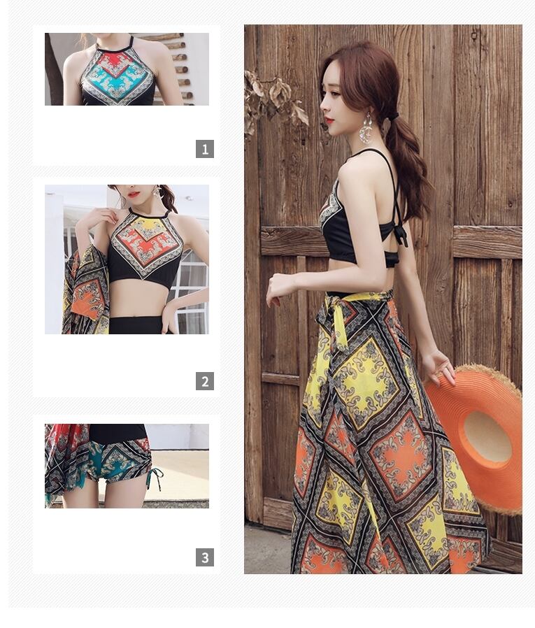 【送料無料】水着 レディース ビキニ 3点セット エスニック アジアン おしゃれ パレオ 体系カバー ハイネック バッククロス ボクサーパンツ 腰巻 スリーピース ハイウエスト リボン アジアン 個性的 韓国 水着 安い 華やか 大人っぽい 個性的 存在感 レトロ 大人かわいい オレンジ イエロー 黄色 青 ブルー こなれ感 カジュアル 海 ビーチ リゾート プール バカンス 主役級 10代 20代 30代 夏 S M L XL 大きいサイズ かっこいい クール トレンド 抜け感 オシャレ db1677