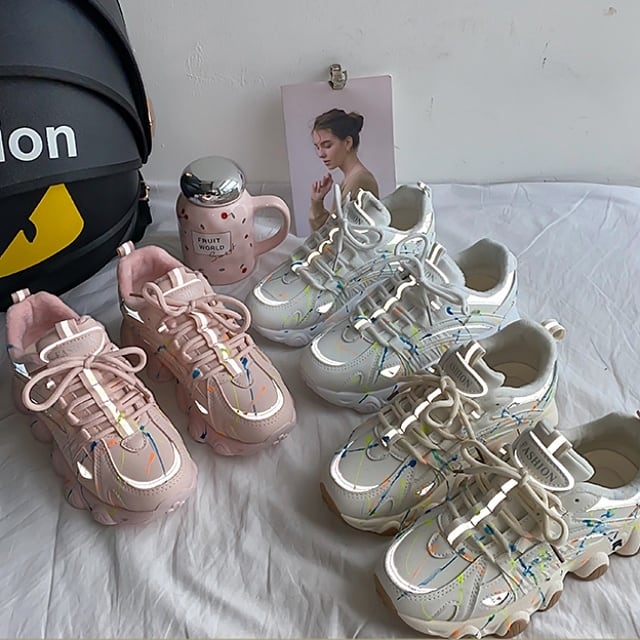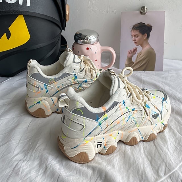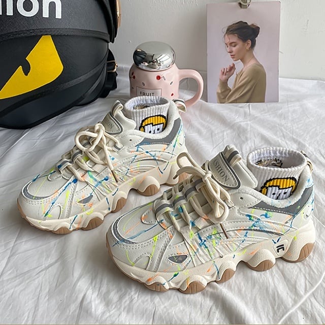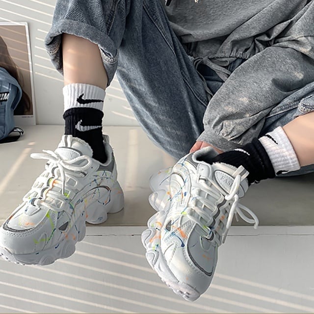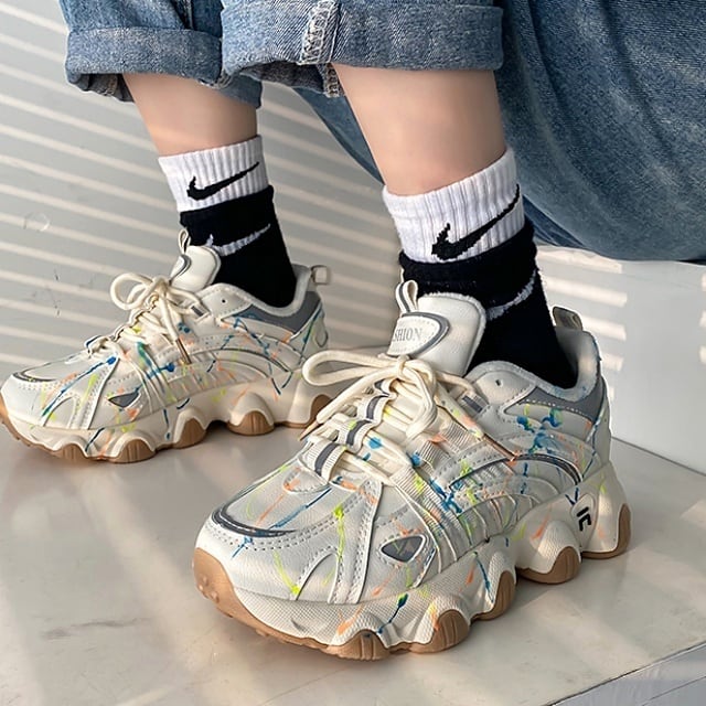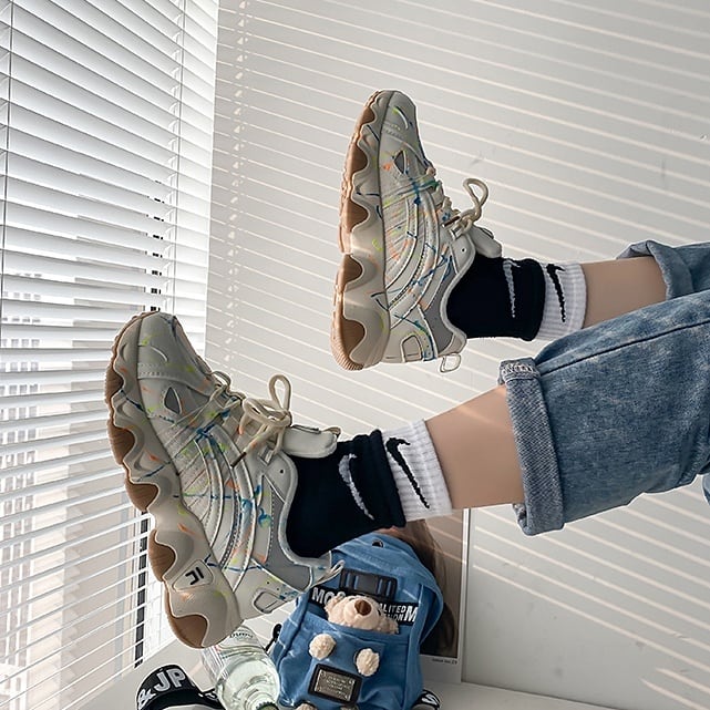 無造作でカラフルなライン模様が個性を放つ、クールなダッドスニーカー♪