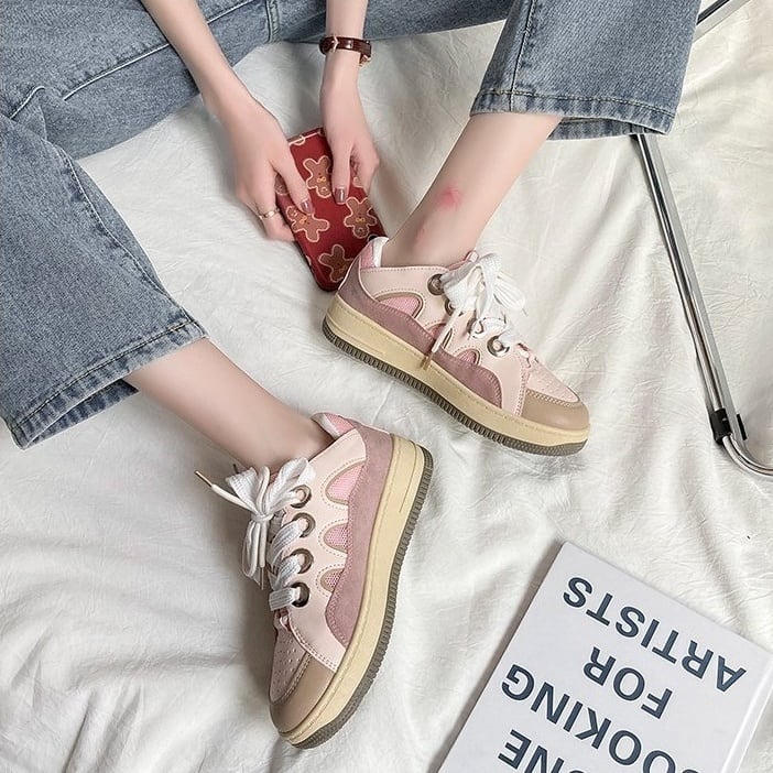 【送料無料】シューズ レディース 靴 くつ クツ スニーカー ローテクスニーカー レトロ クラシカル ローカット 靴紐 フラット 通気性 スポーティー ジェンダーレス かわいい きれいめ 大人可愛い こなれ感 インスタ映え アイテム 韓国 ファッション カジュアル ピンク ホワイト 白 グレー くすみカラー メッシュ 通気性 コーデ デート 通学 学生 休日 公園デビュー 運動 普段使い お出かけ 主役級 10代 20代 30代 春 夏 25cm トレンド 抜け感 オシャレ おしゃれ db1695