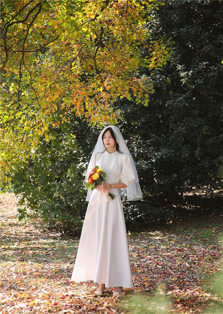 慎ましく落ち着いたデザインのレトロなウェディングドレス♪