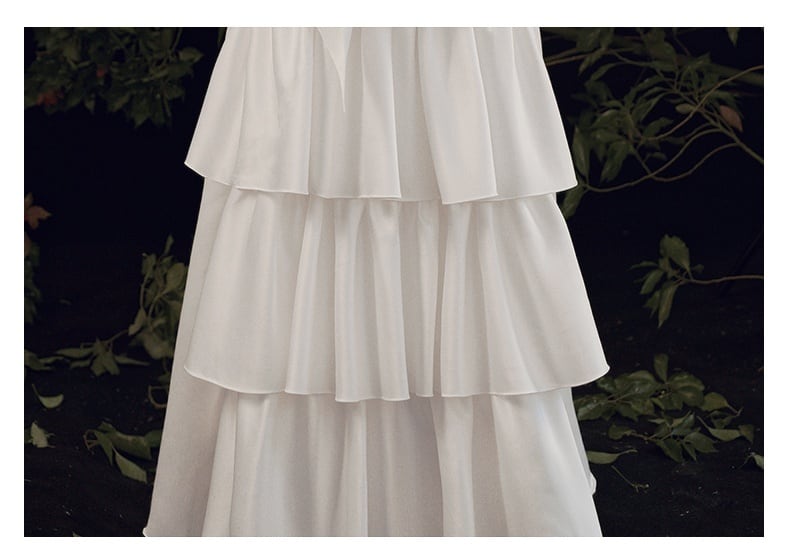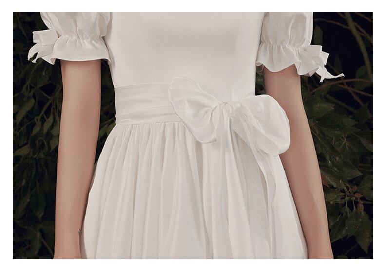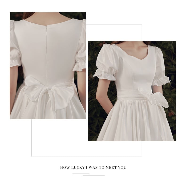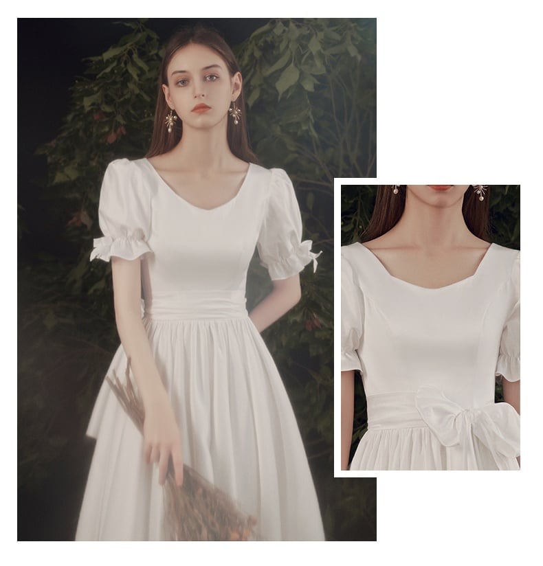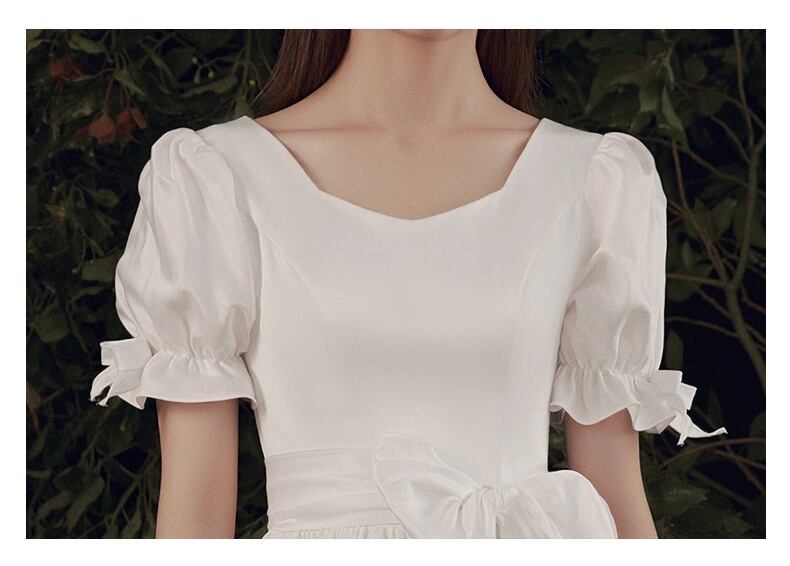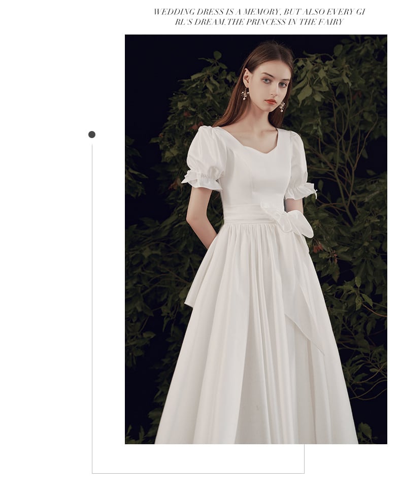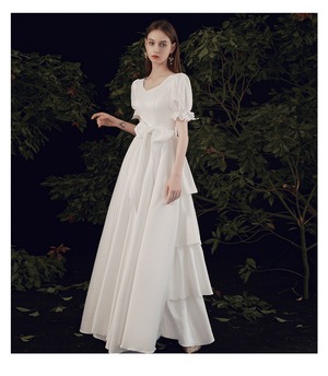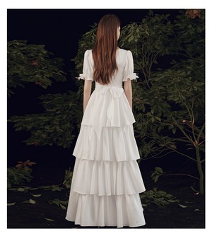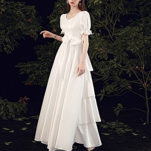 【送料無料】ウェディングドレス レディース 二次会 花嫁ドレス 結婚式 パーティードレス Aライン 光沢 サテン風 レトロ ガーリー パフスリーブ フリル ティアード ウエストリボン クラシカル 袖あり 大きいサイズ 2XL ロングドレス 白 ホワイト 半袖 襟なし カジュアル お嬢様 姫 レストラン ガーデン 披露宴 海外 教会 チャペル 写真館 撮影 森 高原 春 夏 秋 冬 10代 20代 エレガント かわいい キュート シンプル 華やか インスタ映え 個性的 主役級 イベント 衣装 wd0086