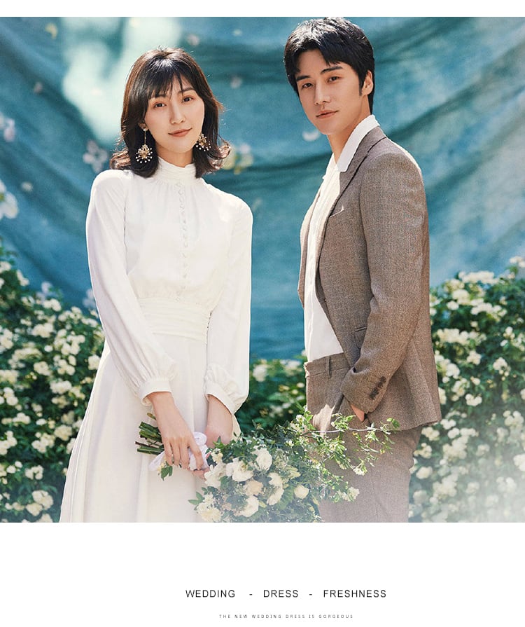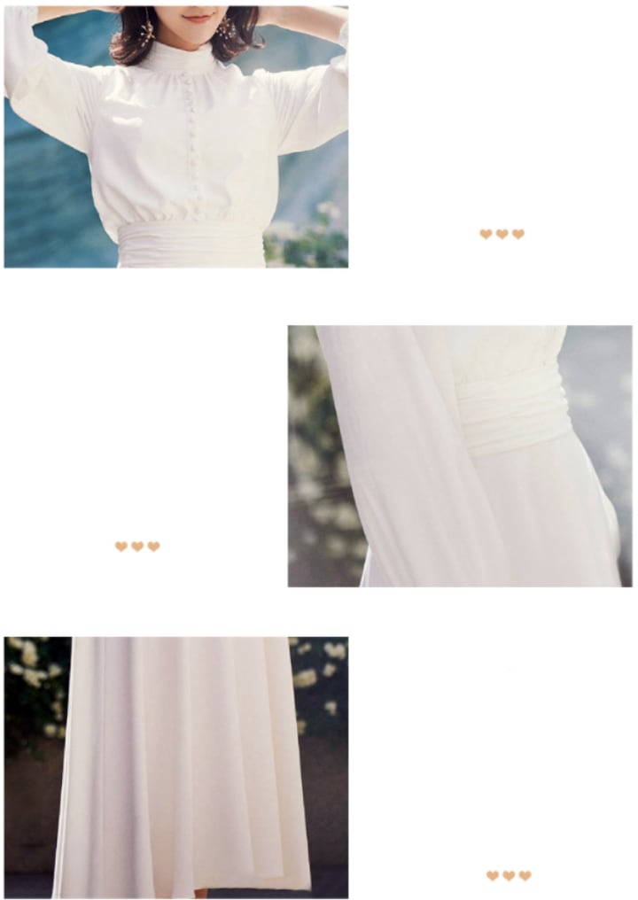 【送料無料】ウェディングドレス レディース 二次会 花嫁ドレス 結婚式 パーティードレス Aライン レトロ ガーリー クラシカル 袖あり ロングドレス 白 ホワイト 半袖 襟あり ハイネック ボタン 長袖 カジュアル ナチュラル ブラウス風 レストラン ガーデン 屋外 お呼ばれ 披露宴 海外 挙式 ブライダル ミニマム婚 写真館 撮影 森 高原 春 秋 冬 10代 20代 30代 大人 かわいい きれいめ 清楚 シンプル インスタ映え 控えめ 軽め 個性的 主役級 イベント 衣装 舞台 wd0085