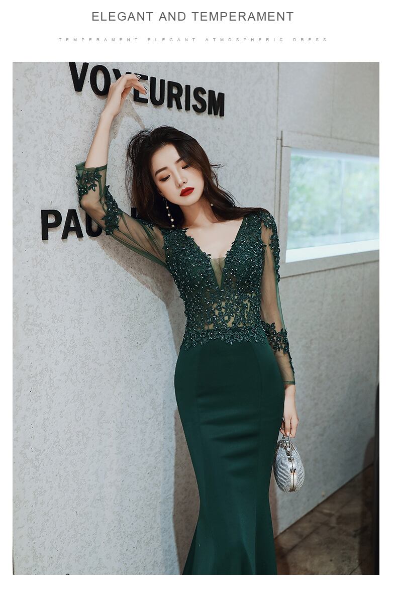 【送料無料】ドレス レディース パーティードレス フォーマルドレス イブニングドレス ロング マーメイドライン レース 透け感 シースルー 袖あり 長袖 セクシー 胸元 谷間 Vネック スリム タイト 大人可愛い 上品 大人 大きいサイズ 2XL セミフォーマル 高級感 リッチ お呼ばれ 披露宴 二次会 二の腕カバー フィッシュテール 緑 グリーン 赤 レッド 青 ブルー 黒 ブラック 春 夏 秋 冬 20代 イベント 衣装 華やか 背中開き フェミニン バックシャン おしゃれ スタイル no2002