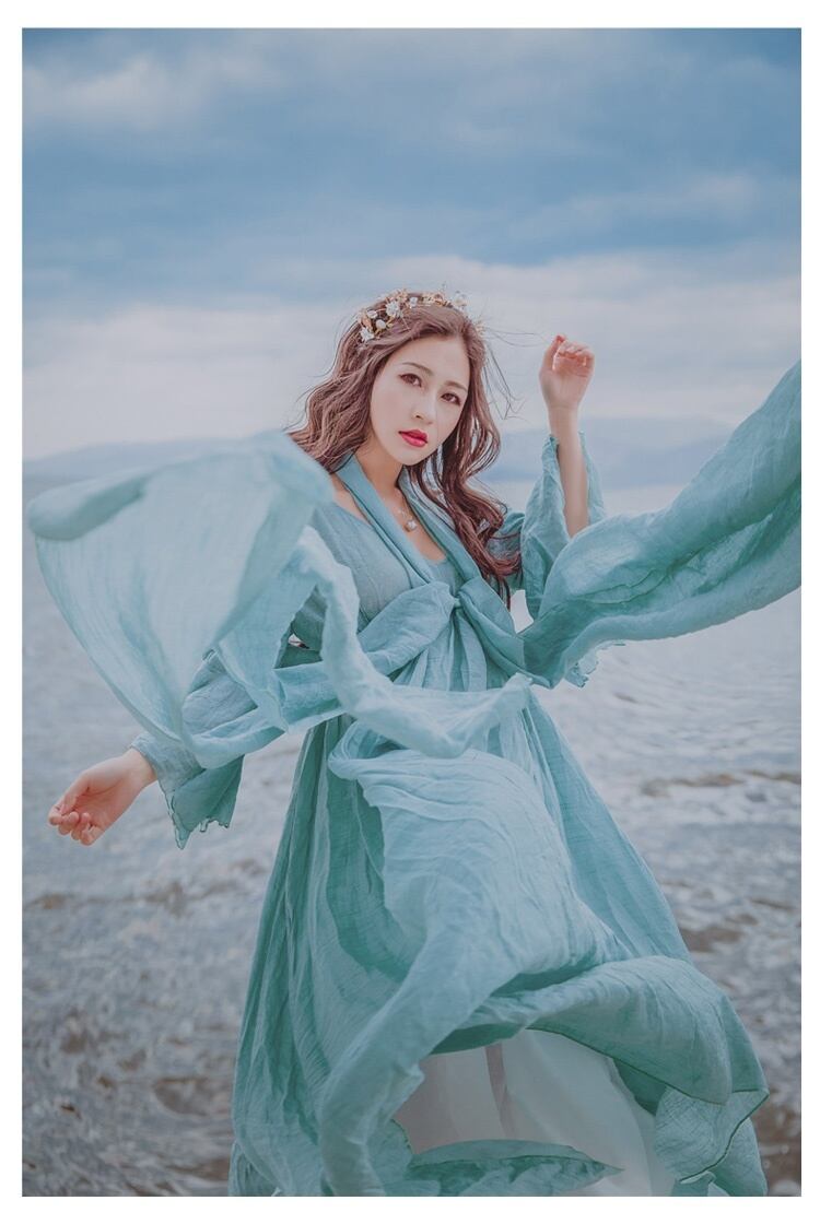 ナチュラルに染まった鮮やかな水色は大自然が似合う!南国リゾートやビーチでも映えるおすすめな1着です^^