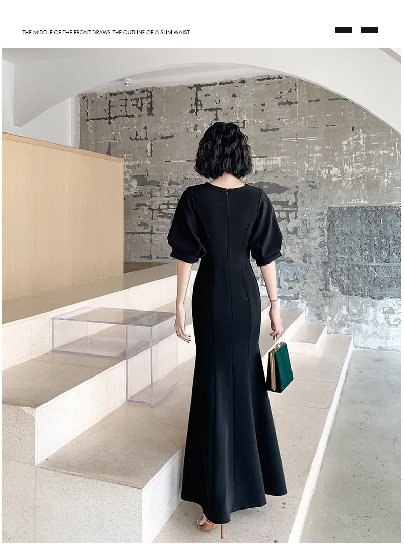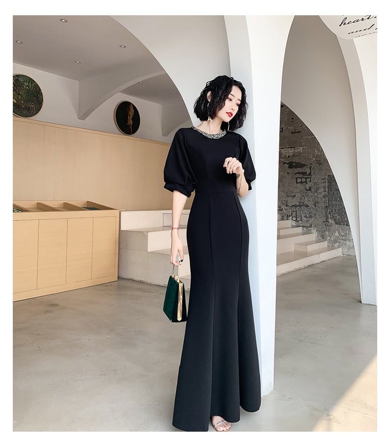 【送料無料】ドレス レディース パーティードレス フォーマルドレス ロング マーメイドライン 細身 スリム 袖あり 半袖 Uネック シンプル シック モダン フェミニン ビジュー ランタンスリーブ 上品 エレガント 大人 大きいサイズ 2XL 3XL 小さいサイズ XS セミフォーマル 高級感 結婚式 お呼ばれ 披露宴 二次会 演奏会 襟なし 二の腕カバー 黒 ブラック 赤 レッド 無地 春 夏 秋 20代 30代 衣装 華やか 大人可愛い セクシー モード系 個性的 カジュアル おしゃれ no2031