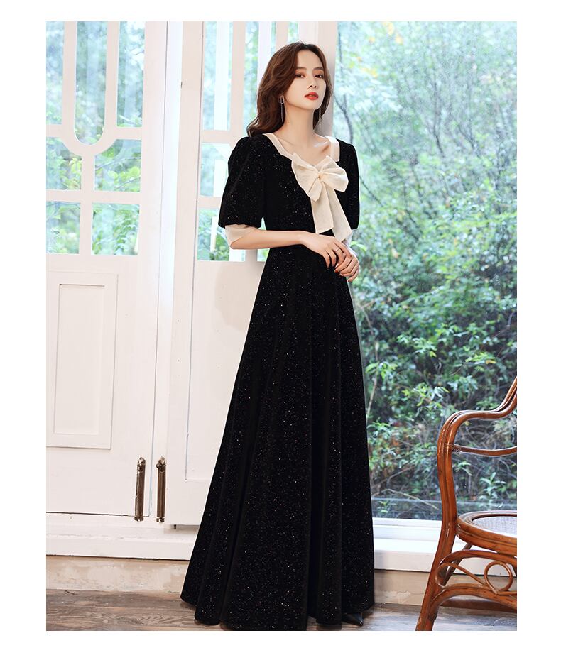 【送料無料】ドレス レディース パーティードレス フォーマルドレス カジュアル ドレスワンピース ロング Aライン 袖あり 5分袖 パフスリーブ リボン ラメ キラキラ スクエアネック 襟なし レトロ クラシカル エレガント かわいい ガーリー キュート 大きいサイズ 2XL 小さいサイズ XS セミフォーマル 清楚 大人可愛い お呼ばれ 結婚式 披露宴 ピアノ 二次会 演奏会 発表会 舞台 ステージ 衣装 黒 ブラック 春 夏 秋 冬 20代 華やか 細身 存在感 二の腕カバー おしゃれ no2041