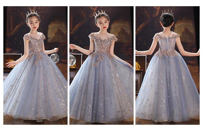 【送料無料】キッズドレス 子供 ドレス おしゃれ ブルー 青 水色 キラキラ ラグジュアリー 大人っぽい ロングドレス ピアノ 発表会 女の子 オフショルダー チュール レース ピンクゴールド 子ども 結婚式 フォーマル スパンコール 星 シフォン 100 110 120 130 140 150 160 かわいい パーティードレス プリンセス ステージ 撮影 ゴージャス 華やか ジュニア キッズ フラワーガール コンクール セレモニー 誕生日 エレガント 綺麗 高級感 個性的 春 夏 秋 冬 kd0220