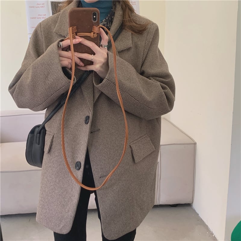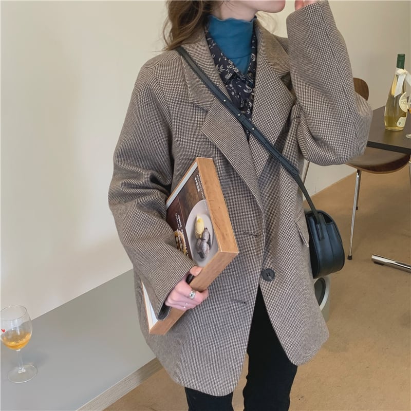【送料無料】アウター ジャケット レディース テーラードジャケット 春 秋 チェック ミディアム丈 長袖 襟付き ボタン シングルブレスト シンプル カジュアル レトロ 大人 おしゃれ 大人女子 大人可愛い おじジャケット 渋コーデ マニッシュ ボーイッシュ クール かっこいい モダン きれいめ 抜け感 ワンサイズ フリーサイズ 大人カラー 秋カラー 10代 20代 30代 通勤 通学 OL 学生 普段使い 休日 お出かけ デート 女子会 韓国 ファッション モテ インスタ映え db1725
