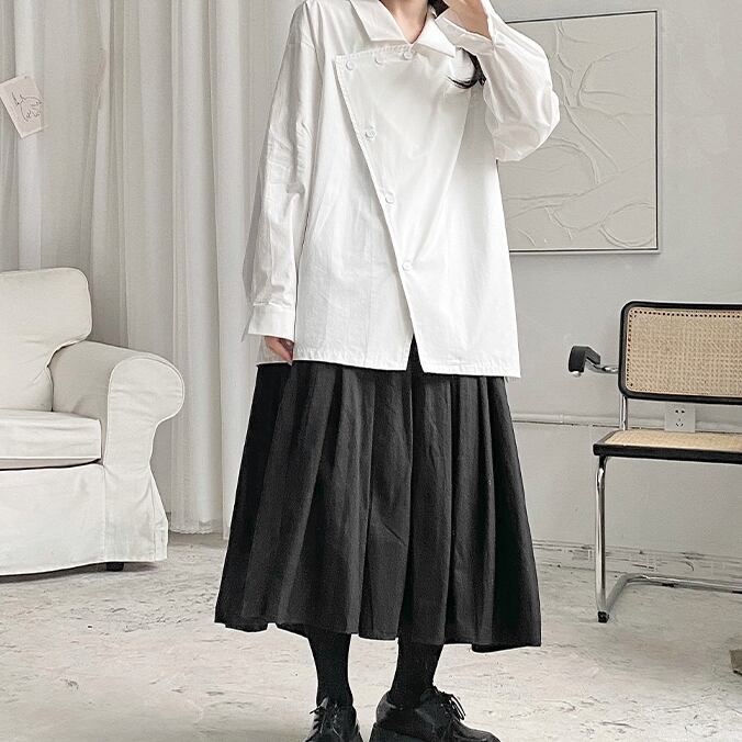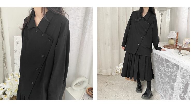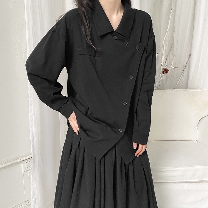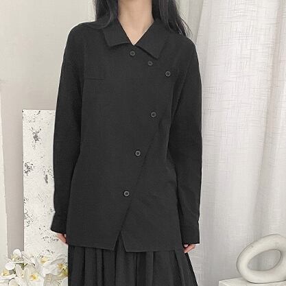 【送料無料】2色 トップス シャツ レディース 長袖 ブラック 黒 ホワイト 白 アシンメトリー 個性的 かっこいい ブラウス 春 秋 ボタン 襟付き ロングシャツ 羽織 アウター S M L XL 10代 20代 30代 シンプル カジュアル きれいめ 大人 大人可愛い おしゃれ かっこいい お洒落 クール 個性的 ボーイッシュ マニッシュ こなれ感 個性的 モノトーン 無地 通勤 通学 OL 学生 着回し 高見え 他にない 目立つ インスタ映え 韓国系 ファッション スタイル db1736