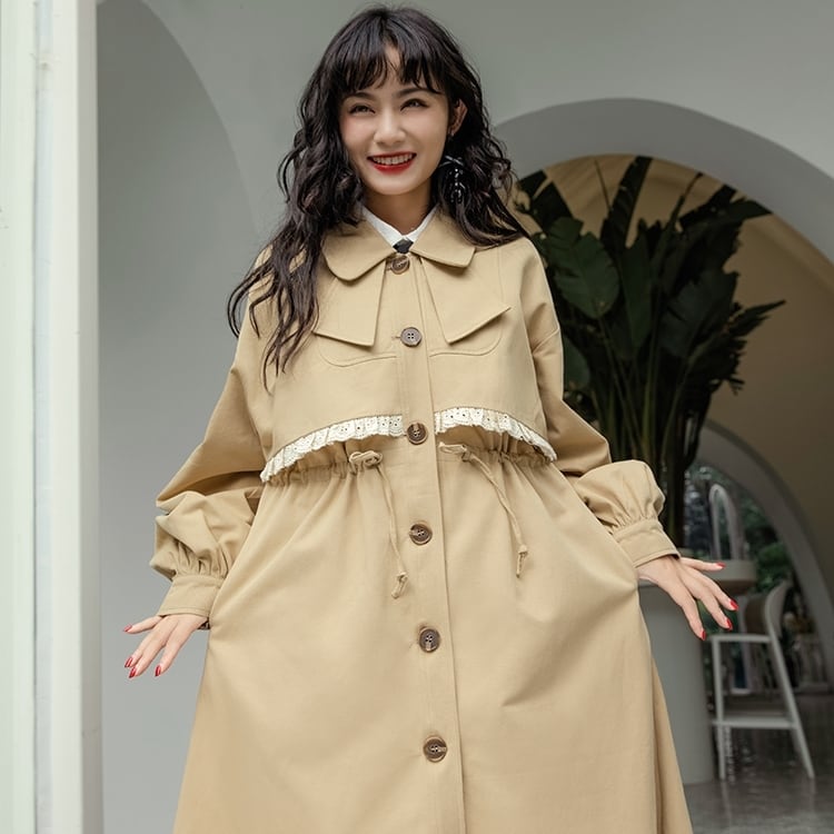 【送料無料】ロング アウター コート レディース トレンチコート 薄手 リボン レース かわいい おしゃれ 個性的 レトロ 韓国 ワンピース ガーリー ミディアム丈 カーキ ベージュ ボタン シングルブレスト 襟付き 大人可愛い カジュアル こなれ感 キュート 抜け感 S M L 無地 ワンピ 10代 20代 通勤 通学 OL 学生 普段使い 休日 お出かけ デート 女子会 旅行 モテ コーデ 韓国系 ファッション インスタ映え コーデ 他にない 目立つ トレンド リボンタイ db1741