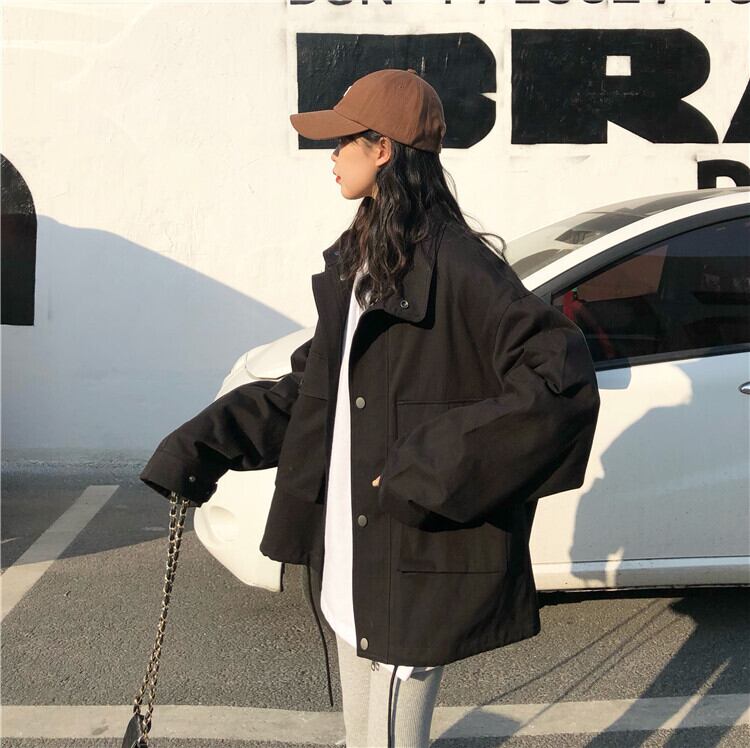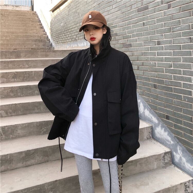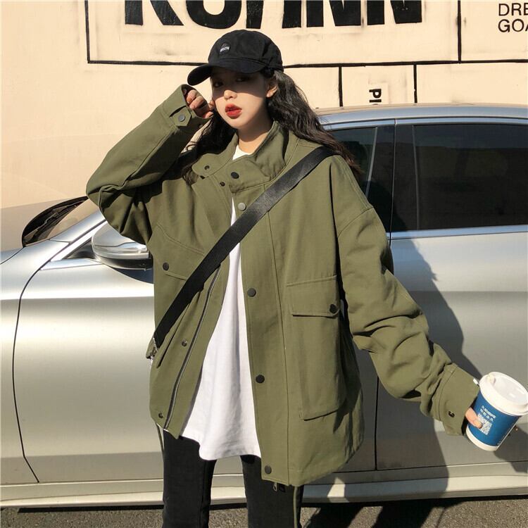 【送料無料】2色 アウター ジャケット レディース ブルゾン ジャンパー 秋 アーミーグリーン 緑 ブラック 黒 長袖 ポケット ボタン ジッパー ジップ 襟付き シンプル カジュアル ルーズ ボーイッシュ マニッシュ クール 大人可愛い おしゃれ かっこいい こなれ感 ラフ お洒落 無地 ワンサイズ フリーサイズ 10代 20代 30代 学生 OL ママ 休日 お出かけ 公園デビュー 普段使い 韓国系 ファッション コーデ インスタ映え スタイル 人気 db1752