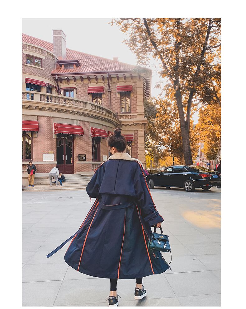 【送料無料】 アウター レディース ロングコート トレンチコート ネイビー 長袖 ライン ボア 個性的 バイカラー 大人可愛い かっこいい おしゃれ カジュアル こなれ感 S M L XL 大きいサイズ インスタ映え 秋 冬 10代 20代 30代 襟付き エコファー ウエストマーク リボン 通勤 学生 女子会 休日 普段使い お揃い 双子 韓国 ファッション コーデ 大人 クール シンプル マニッシュ ボーイッシュ トレンド 主役級 きれいめ デート 抜け感 紺 ロング丈 db1783