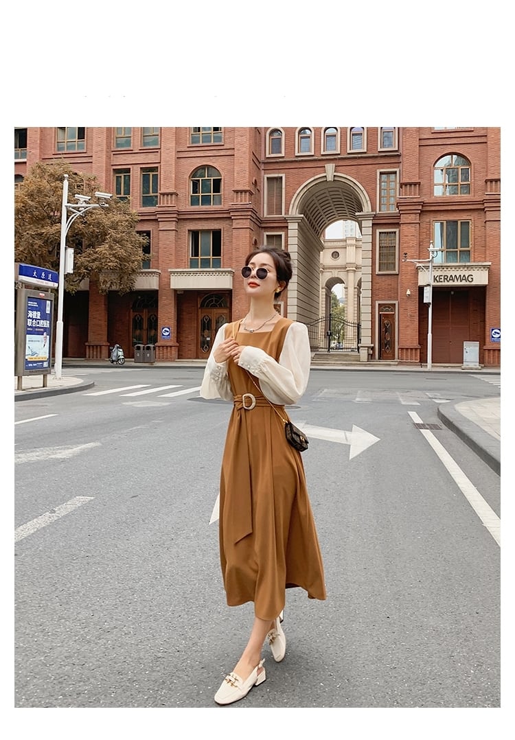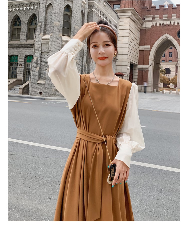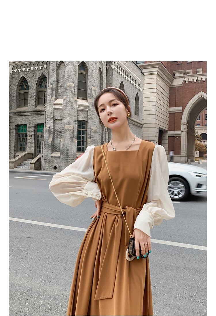 【送料無料】ワンピース レディース ロング丈 ミモレ丈 春 秋 ブラウン 茶色 長袖 ウエストベルト バイカラー ワンピ ドレス スクエアネック カジュアル ベイクドカラー シンプル 大人可愛い きれいめ お洒落 上品 大人女子 こなれ感 大人カジュアル おしゃれ S M L XL 無地 大人カラー 春カラー 秋カラー 10代 20代 30代 お出かけ デート ファッション モテ コーデ インスタ映え スタイル 人気 ロングワンピース 上品 高見え 他にない db1762
