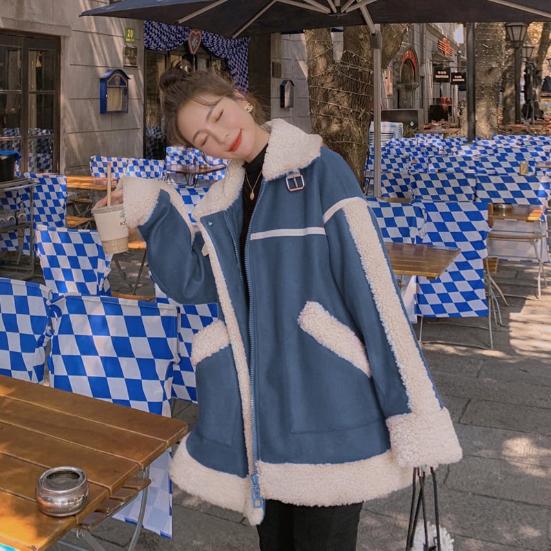【送料無料】アウター もこもこ ジャケット コート レディース 秋 冬 ブルー 青 ジッパー ジップ ポケット モコモコ 長袖 かわいい カジュアル おしゃれ 個性的 ボーイッシュ こなれ感 ラフ キュート S M L XL ゆったり 10代 20代 学生 休日 お出かけ デート 旅行 韓国系 ファッション インスタ映え コーデ モテ スタイル 人気 db1766