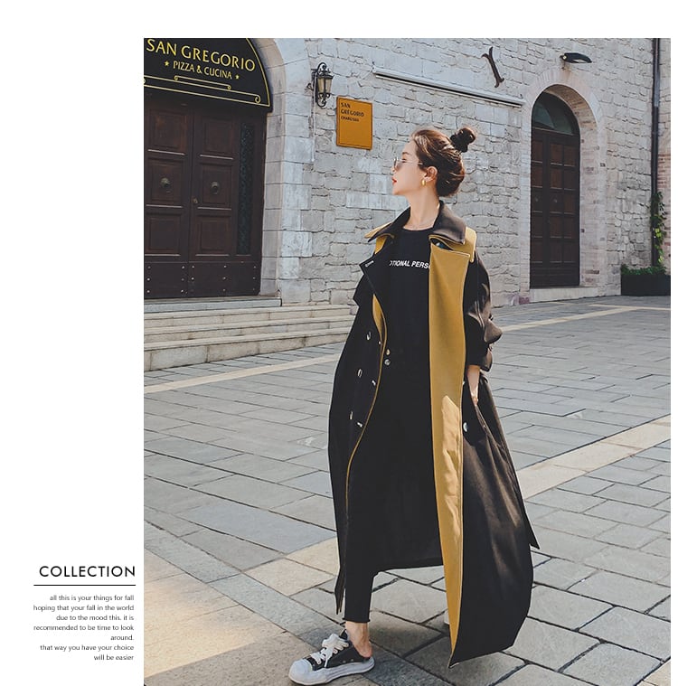 【送料無料】アウター コート トレンチコート レディース ロング丈 春 秋 ブラック 黒 バイカラー 長袖 襟付き ボタン ダブルブレスト ポケット カジュアル 上品 大人カジュアル クール かっこいい おしゃれ 大人女子 シンプル お洒落 S M L XL 大人カラー 無地 20代 30代 40代 OL ママ 普段使い 通勤 休日 お出かけ 韓国系 ファッション インスタ映え 人気 モテ コーデ スタイル db1769