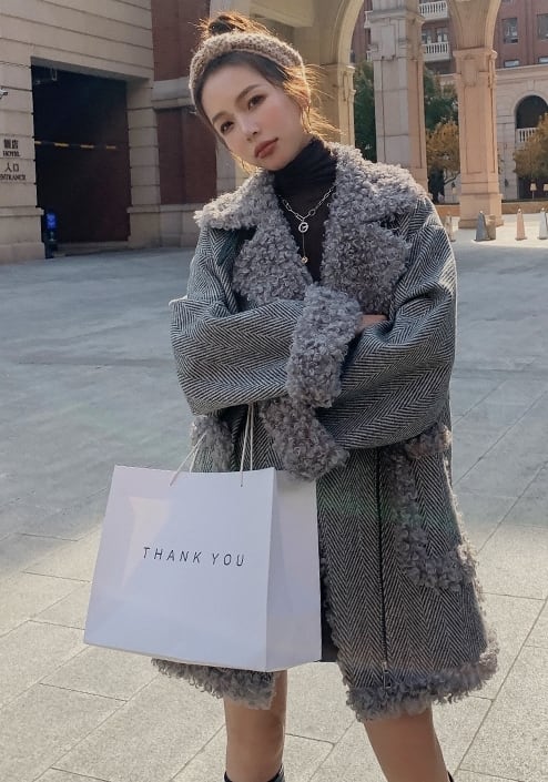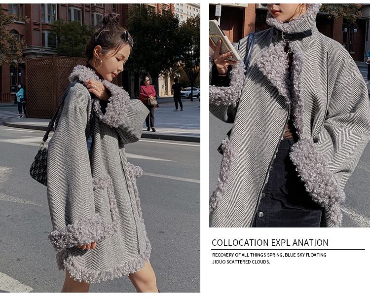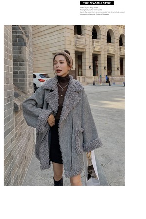 襟や袖口のモコモコがキュートなミディアムコート♪