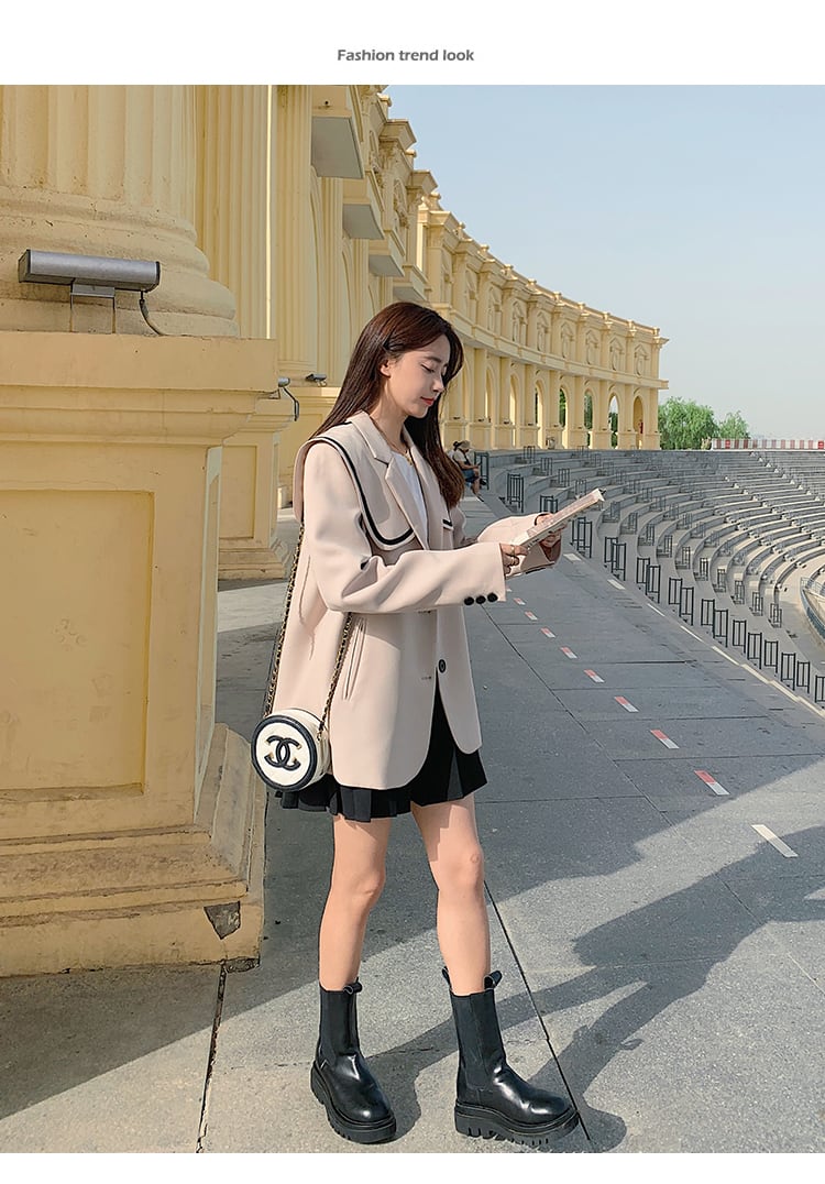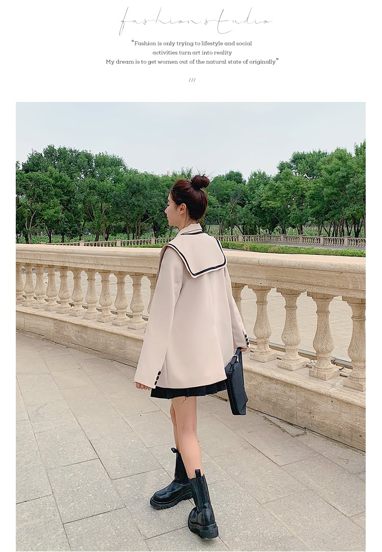 【送料無料】ジャケット レディース ビッグカラー 制服風 アウター 上着 スーツ おしゃれ 大人かわいい ミドル丈 ベージュ黒 ブラック 長袖 S M L XL セーラー服風 可愛い かっこいい 個性的 バイカラー きれいめ レトロ カジュアル こなれ感 インスタ映え 春 秋 10代 20代 通勤 学生 お出かけ 普段使い お揃い 双子 韓国系 ファッション トレンド 流行 コーデ 主役級 抜け感 キュート マニッシュ ラブリー ルーズ 存在感 イベント パーティー モテ バックシャン db1807
