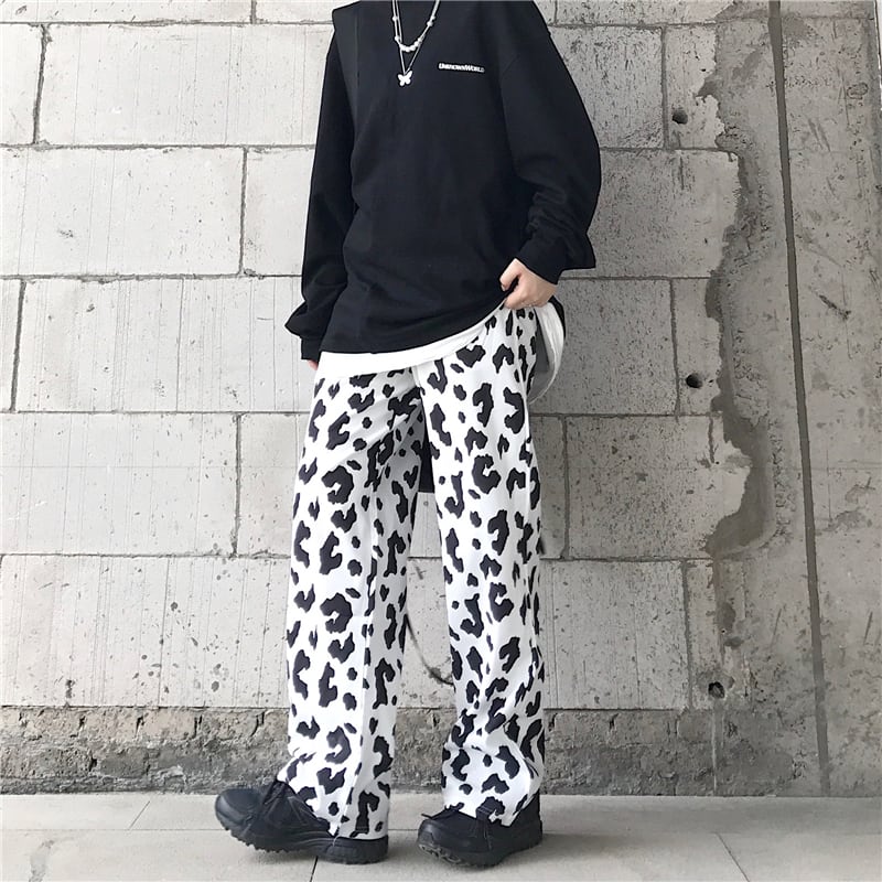 【送料無料】パンツ レディース ボトムス ワイド ズボン 牛柄 モノトーン ウシ 個性的 ユニーク フルレングス ハイウエスト 牛 アニマル 黒 白 春 夏 秋 大きいサイズ 大人 カジュアル ストリート モード クール ワイドパンツ こなれ感 存在感 韓国 ファッション かっこいい 大人女子 お洒落 大人カラー インスタ映え 古着風 ヴィンテージライク 大人カジュアル 着回し コーデ デート お出かけ 休日 旅行 S M L XL 10代 20代 30代 目立つ ユニーク おすすめ db1802