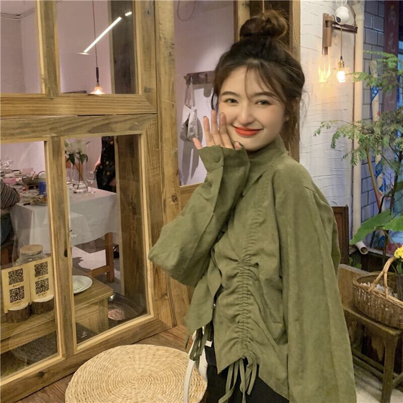 【送料無料】トップス シャツ レディース 長袖 襟付き ボタン ブラウス ショート丈 ミディアム丈 リボン フリル デザイン袖 バルーン袖 ボリューム袖 オールシーズン 春 夏 秋 冬 カーキ 無地 ボタン シンプル カジュアル レトロ かわいい スタイルアップ 着こなし自由 大人可愛い 大人女子 おしゃれ こなれ感 ワンサイズ フリーサイズ 10代 20代 通勤 通学 学生 OL 主婦 デート お出かけ お散歩 休日 女子会 普段使い 着回し 重ね着 韓国 ファッション db1778