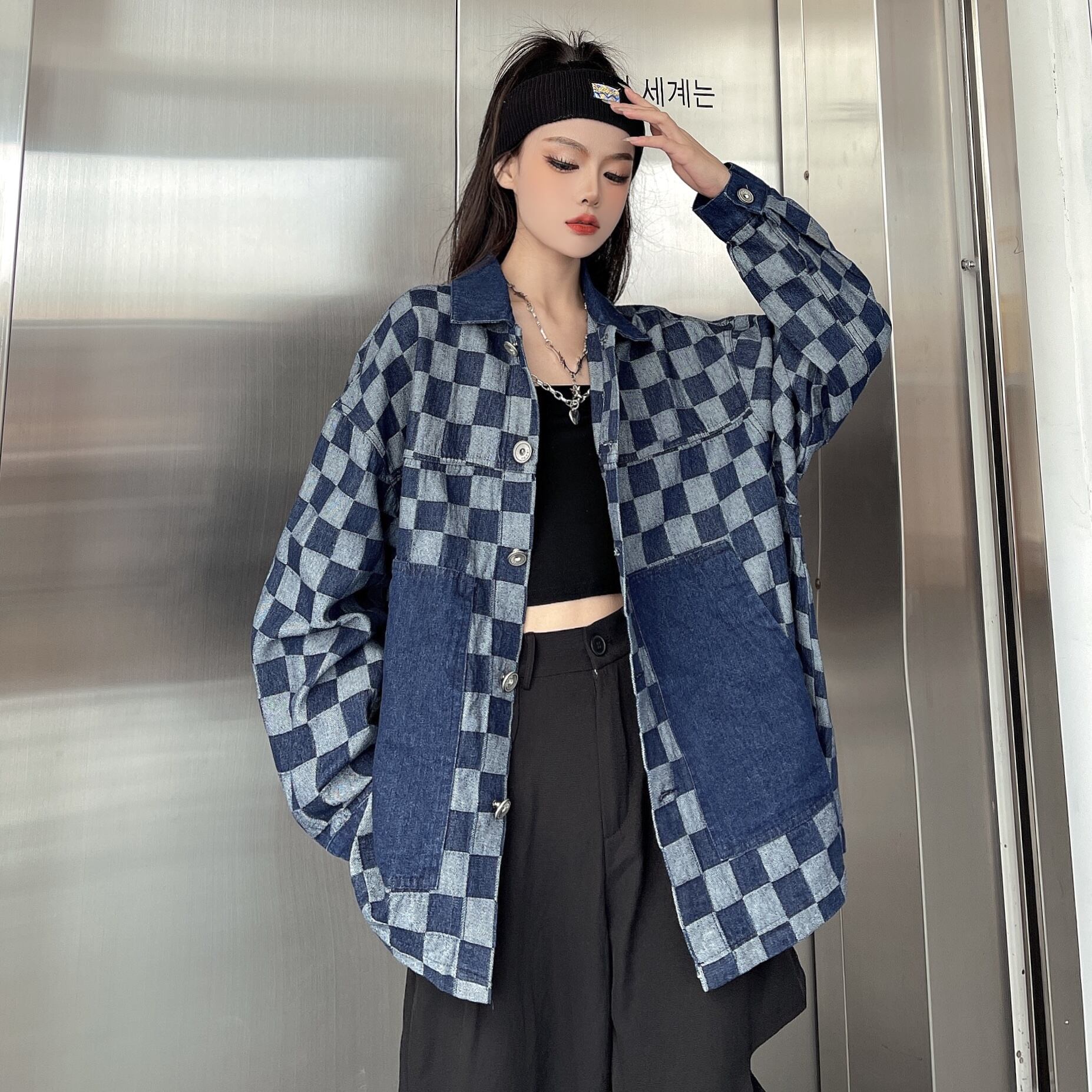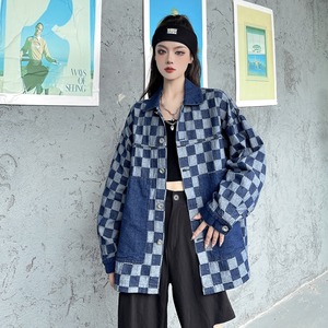 【送料無料】 アウター ジャケット デニム Gジャン レディース おしゃれ 大人可愛い ブルー ブロックチェック 切り替え バイカラー 個性的 ラフ ルーズ 上着 羽織 長袖 S M L XL 2XL 大きめ オーバーサイズ カジュアル 大人かわいい こなれ感 インスタ映え アイテム 韓国 ファッション お洒落 大人カジュアル コーデ デート 通学 学生 お出かけ 普段使い 主役級 10代 20代 30代 春 秋 冬 トレンド 映え 抜け感 ゆったり ボーイッシュ かっこいい db1831