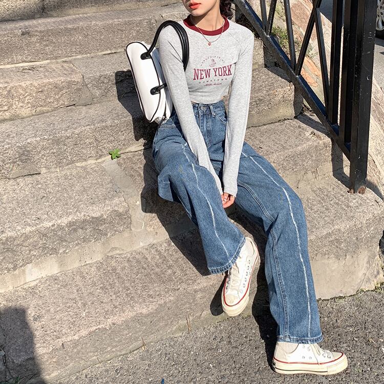 【送料無料】 パンツ Gパン デニム デニムパンツ レディース ボトムス ワイド ワイドパンツ フルレングス ハイウエスト ブルー ライン 春 夏 秋 冬 大人 おしゃれ 可愛い かっこいい 大人女子 カジュアル お洒落 ストリート 大人カジュアル インスタ映え 古着 ヴィンテージライク シンプル ママ ママコーデ ベーシック 着回し コーデ デート お出かけ 休日 旅行 S M L 脚長 10代 20代 30代 韓国 普段使い 主役級 存在感 ルーズ 個性的 大人可愛い db1841