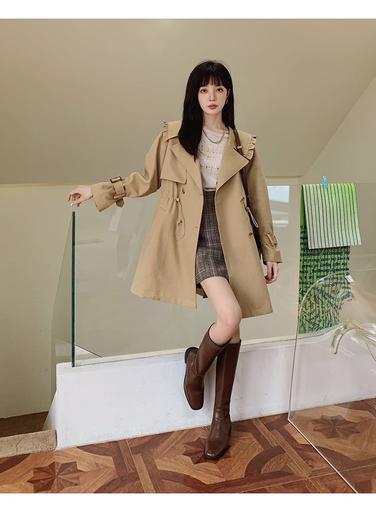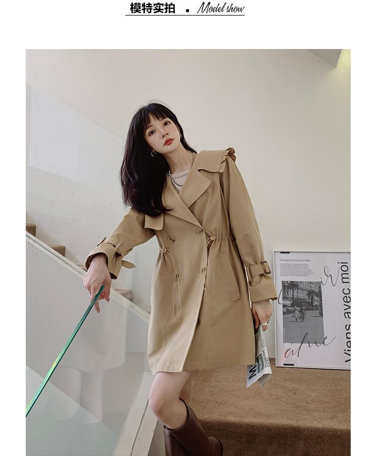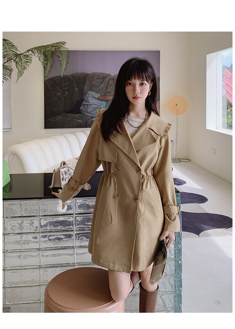 【送料無料】アウター コート レディース 春 秋 カーキ トレンチ風 ビッグカラー フリル 個性的 長袖 ミディアム丈 襟付き 膝丈 ボタン ダブルブレスト カジュアル シンプル 大人カジュアル かわいい おしゃれ きれいめ 大人女子 こなれ感 抜け感 お洒落 キュート 普段使い S M L 10代 20代 OL 学生 ママ 通勤 通学 休日 デート 女子会 お出かけ 女子力 モテ コーデ インスタ映え 韓国系 ファッション 人気 db1903