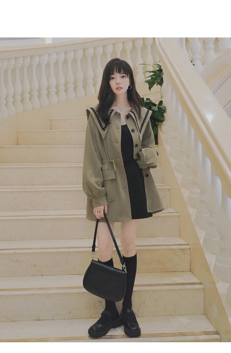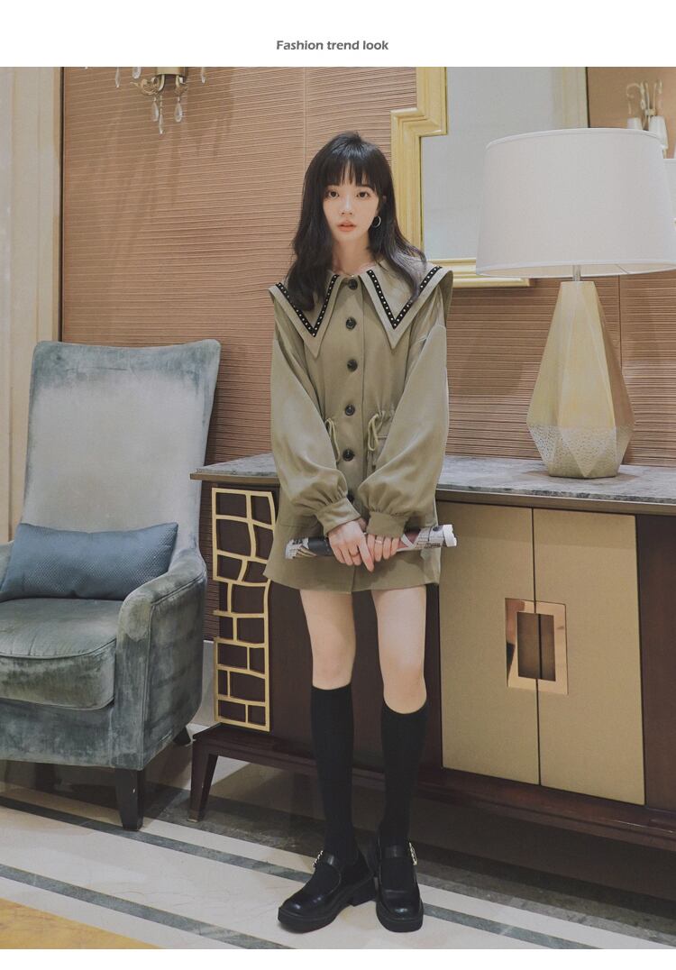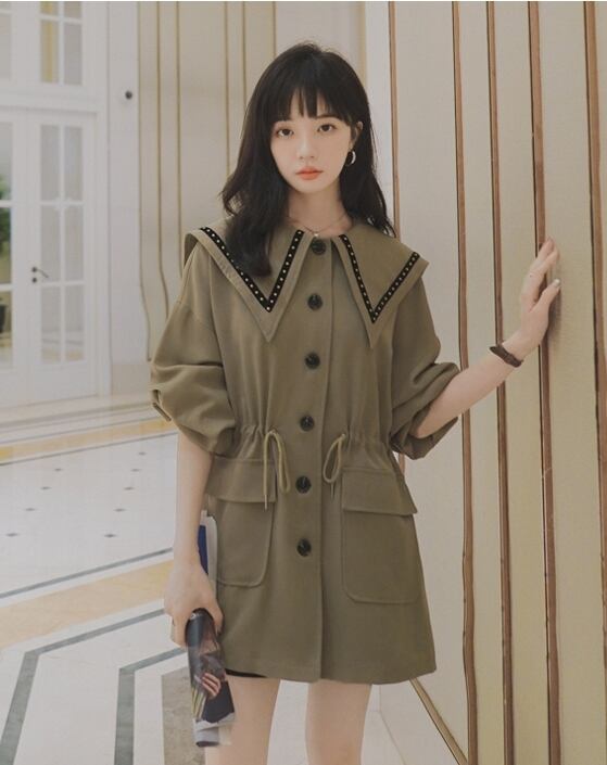 【送料無料】アウター コート レディース 春 秋 トレンチ風 ビックカラー ショート ジャケット オリーブ グリーン 個性的 襟付き 長袖 ボタン シングルブレスト シンプル カジュアル シック 大人カジュアル かわいい 大人女子 こなれ感 おしゃれ 大人可愛い 抜け感 お洒落 無地 大人カラー 秋カラー S M L 10代 20代 30代 ママ OL 学生 普段使い 通勤 通学 公園デビュー 休日 お出かけ デート 女子会 インスタ映え モテ コーデ 韓国系 ファッション スタイル 人気 db1904