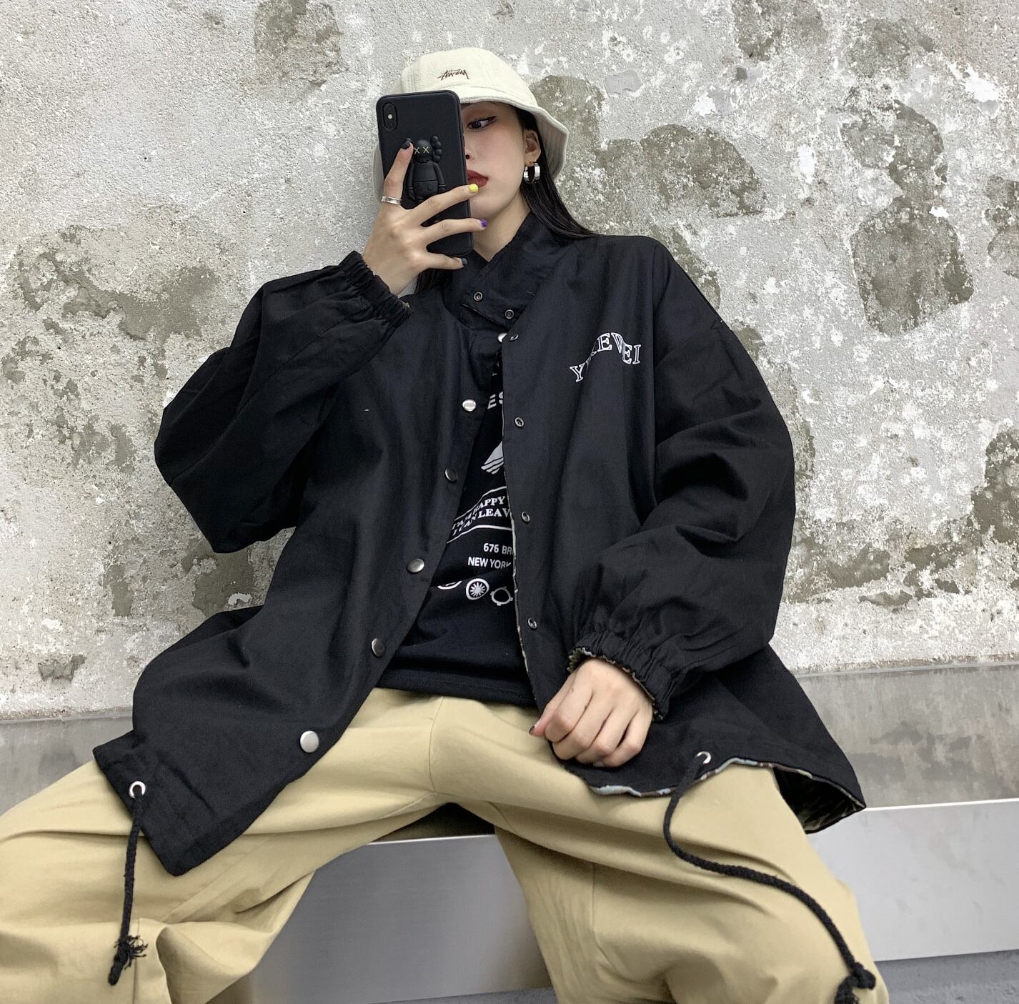 スタンドカラーのオーバーサイズのブルゾンジャケット♪