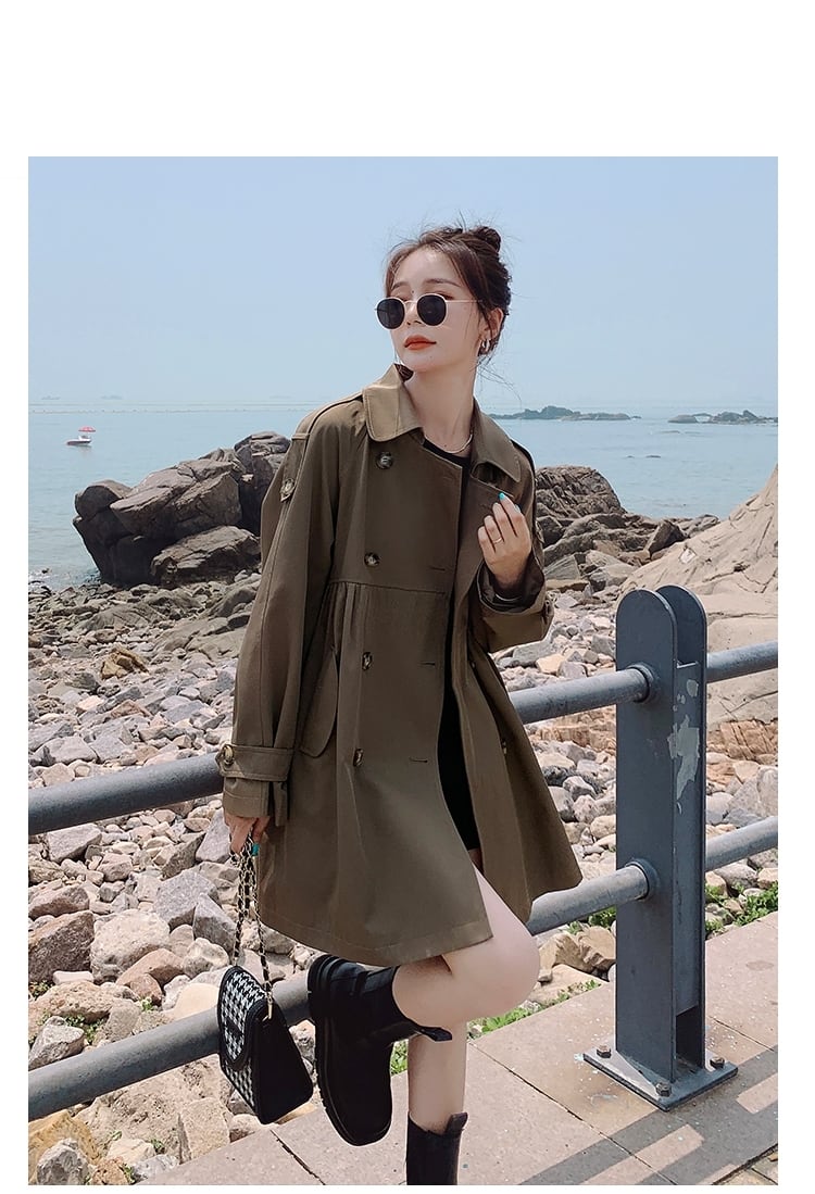 【送料無料】アウター コート ジャケット レディース ミディアム丈 春 秋 カーキ ブラック 黒 長袖 ラグランスリーブ ボタン ダブルブレスト 襟付き シンプル カジュアル かわいい おしゃれ 大人女子 大人可愛い こなれ感 キュート 抜け感 秋カラー 大人カラー 無地 S M L XL 10代 20代 30代 OL 学生 ママ 通勤 通学 普段使い お出かけ 休日 女子会 デート 韓国系 ファッション モテ コーデ 人気 スタイル db1907